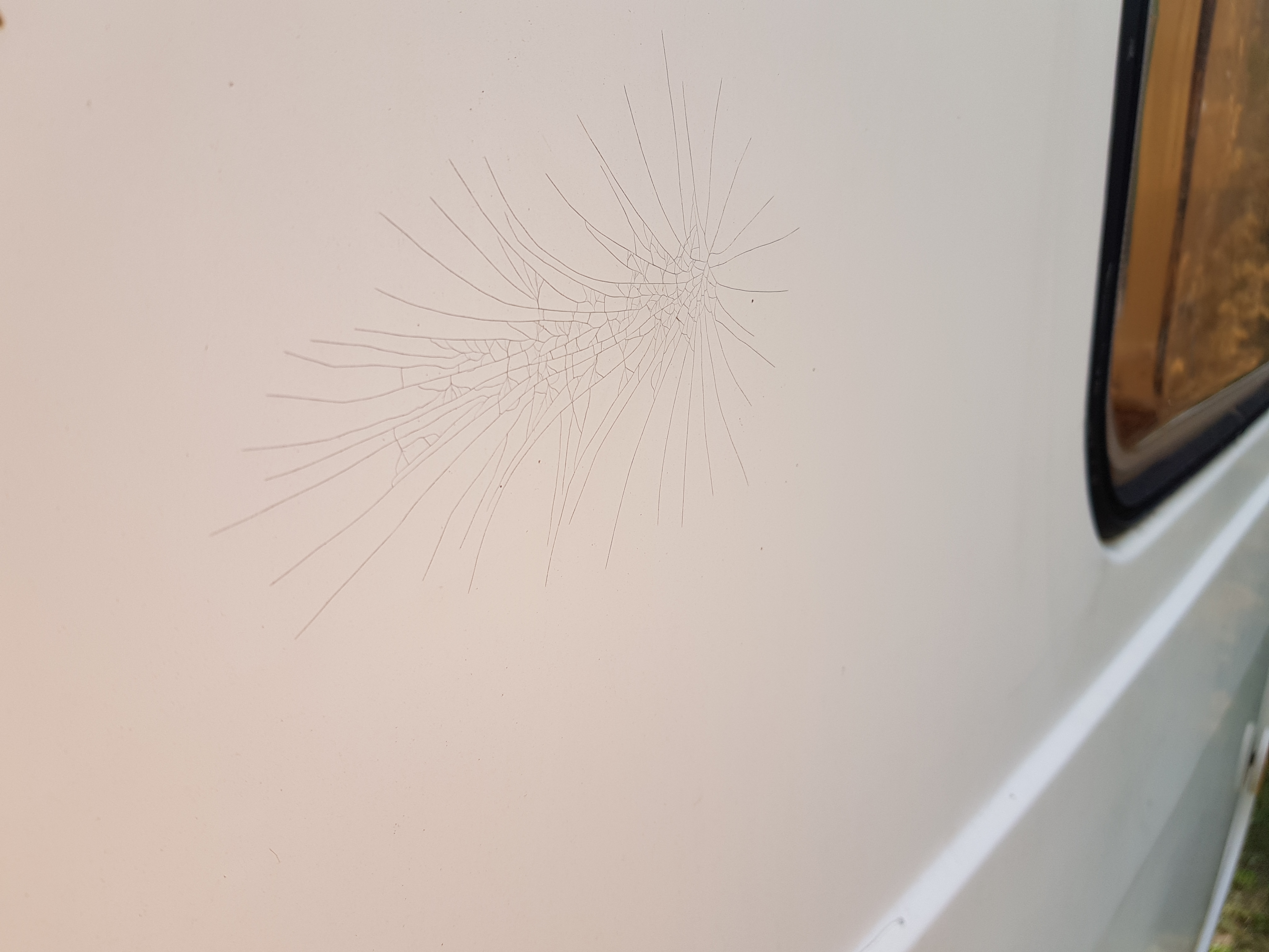 - Laminat na pierwszy rzut oka wyglądał ok, ale jednak jest sporo pajączków, a nawet mocniejszych uszczerbków. Widać, że ktoś próbował to szpachlować. Z tego co wyczytaliśmy, pajączki najpierw trzeba porozwiercać, także trochę roboty przed nami. Będziemy chcieli docelowo malować ją farbą poliuretanową, prawdopodobnie wałkiem welurowym i ewentualnie trochę to później spolerować. Nie mamy możliwości malowania natryskowego.