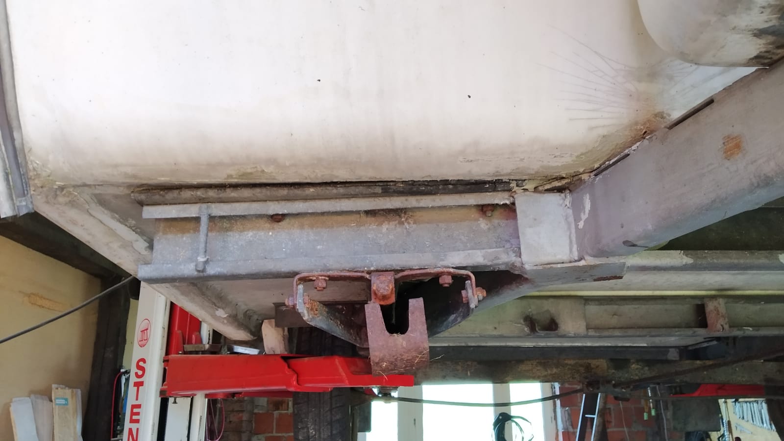 Suma summarum to chyba trzeba poszukać innej przyczepy. Obejrzałem ramę od spodu, zrobiłem zdjęcia. Teraz siedzę i łapię deprechę bo porównałem to co mam z fotkami ram Pavulona i Confexa. Ta przyczepa to "pies zmielony z budą" jak mawia znajomy mechanik. Rama składa się z kilku innych, to wszystko pospawane na sztywno z dyszlem, wygląda jak operacja przeprowadzona na żywca - czyli jak by dopasowywali elementy pod budką i ta ciachali. Jak to funkcjonowało tyle lat nie mam pojęcia. Ale jeden obraz za tysiąc słów. Problem najazdu rozwiązany - stary zaspawany na sztywno.