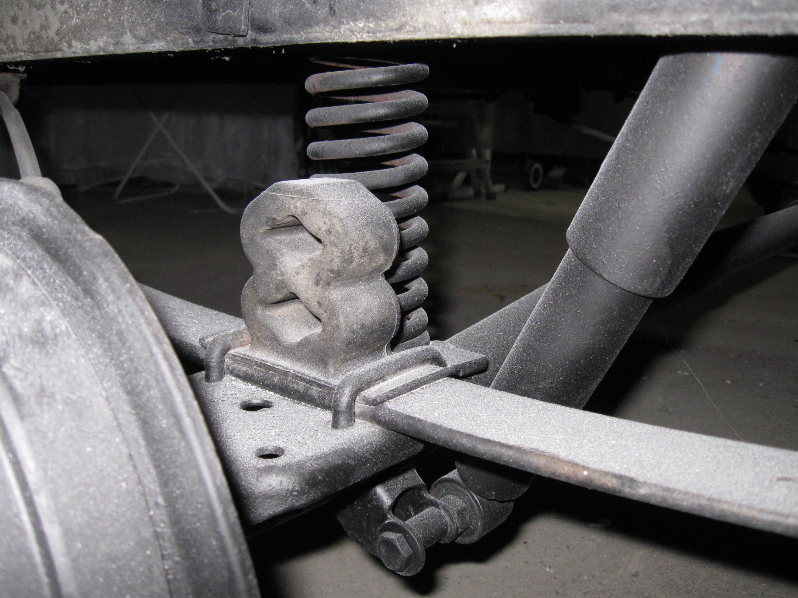 A może w ten sposób (używając i resora i sprężyny) ktoś zrealizował pomysł na progresywne resorowanie - może nieduże ugięcia przejmuje na siebie głównie resor i jest mięciutko i delikatnie, a przy większych ugięciach zawieszenia, przy większym obciążeniu "włączają się do gry" sprężyny - to byłoby świetne. Ogólnie rozwiązanie to wygląda całkiem fajnie. Dużo bym dał za progresywne sprężyny do mojego holownika.