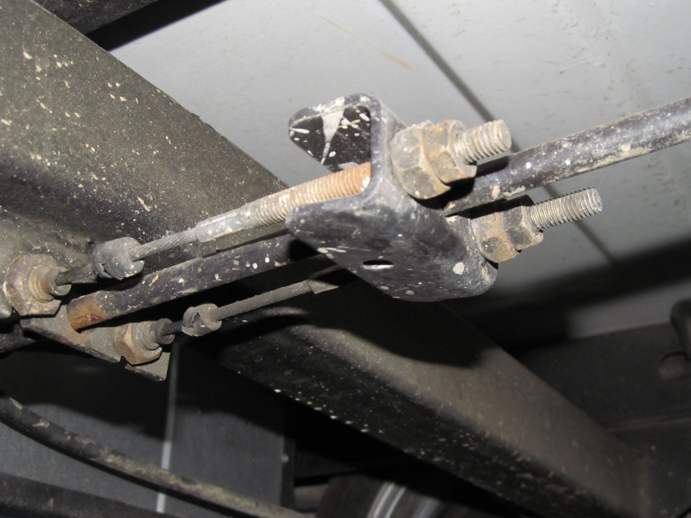 Cała regulacja odbywa się z drugiej strony,od najazdu.Na końcu tego druta (cięgna) od strony najazdu jest coś w rodzaju "beczki"jest to amortyzator od cięgna (to nie jest tylko cięgno do ręcznego ale również od najazdu).Ów amortyzator powoduje natychmiastowe zwolnienie cięgna gdy przyczepa przestaje napierać na samochód ( czyli hamować).Należy to poprawnie wyregulować,ma wpływ na jakość hamowania.