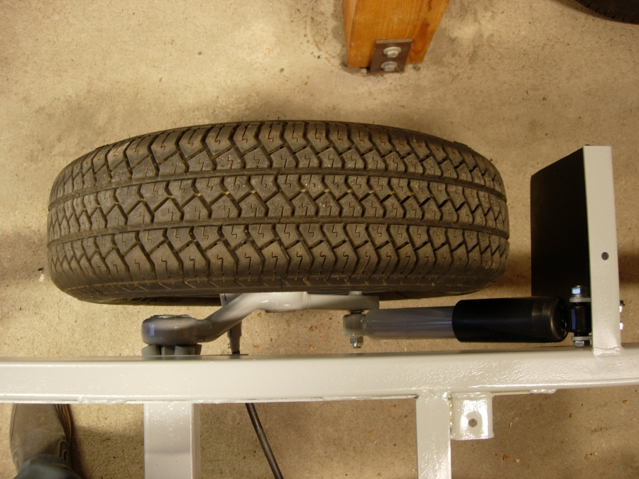 Siłownik hydrauliczny. Jest coś na wzór wywrotki choć do samoistnego zsuwania się jeszcze trochę brakuje. Ale jest łatwiej zepchnąć piasek. Poza tym odchylana paka ułatwia wjazd po najazdach motocyklem.