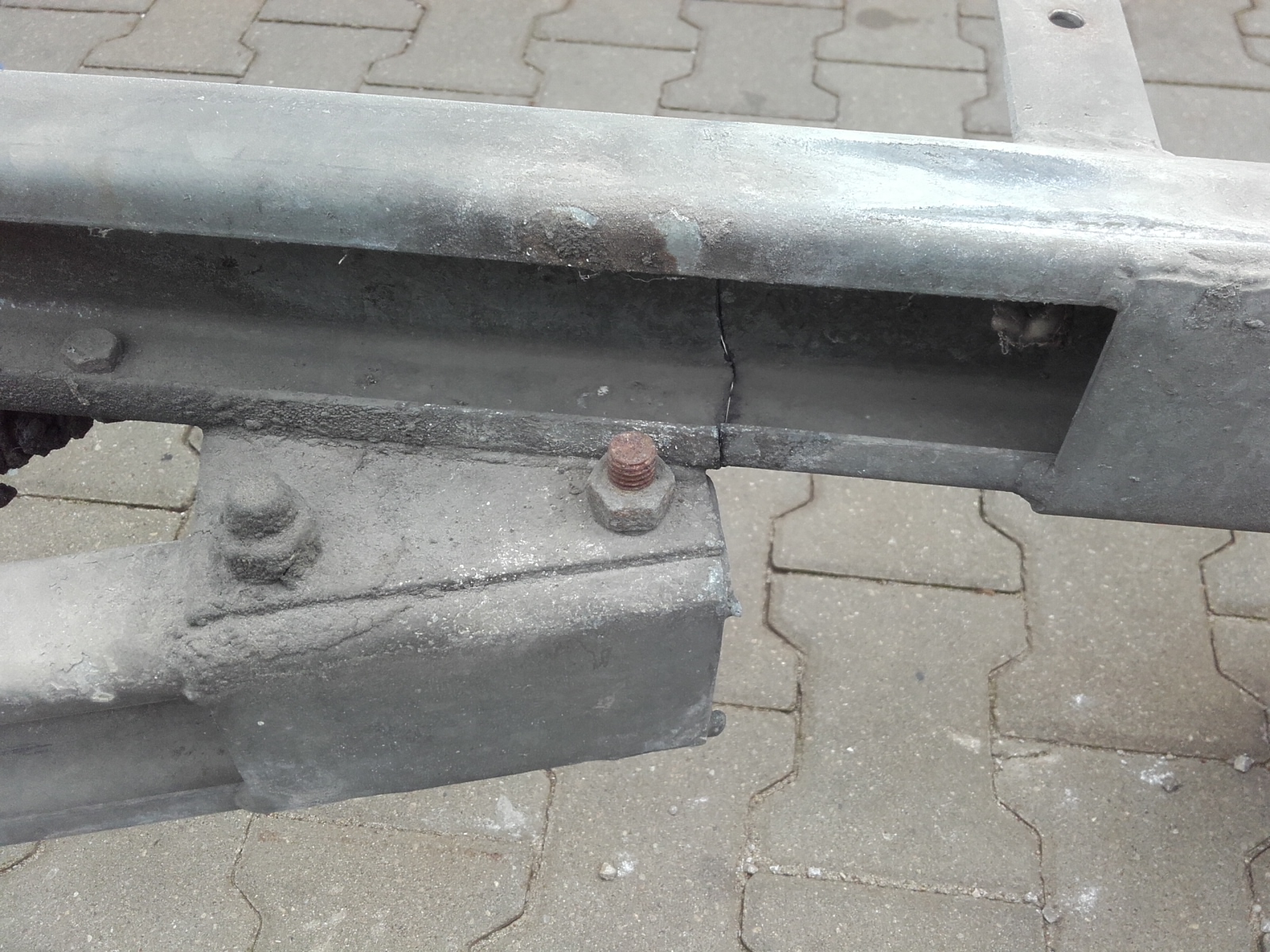 Usterka polega na pęknięciu łączenia dyszla z ramą. Rama oczywiście w ocynku.