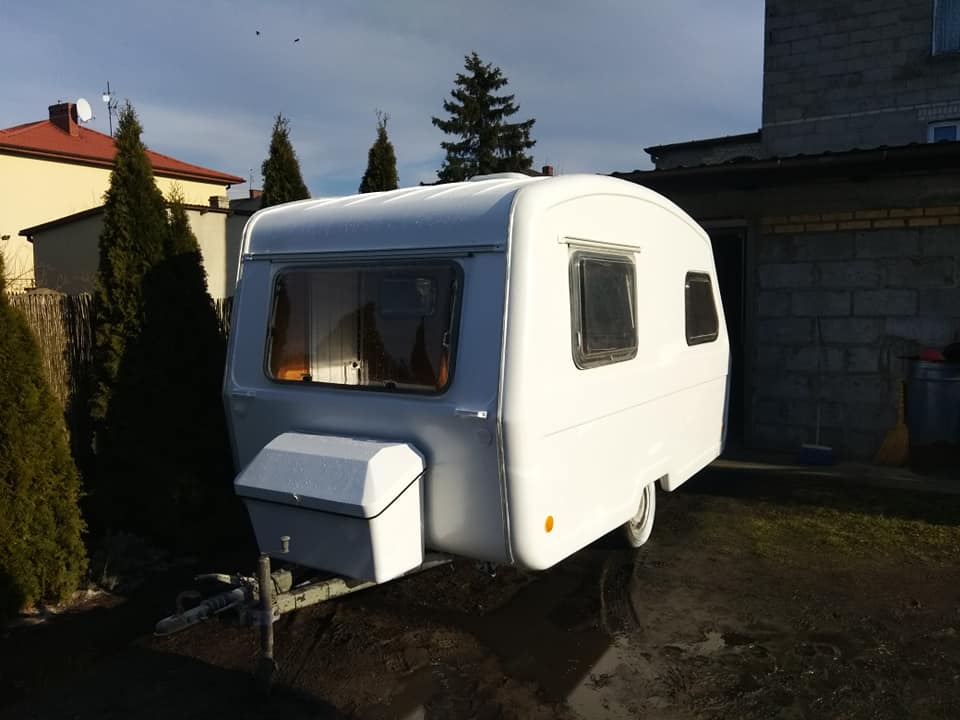 Cała przyczepa była wyłożona oryginalną tapicerką łącznie z sufitem.
