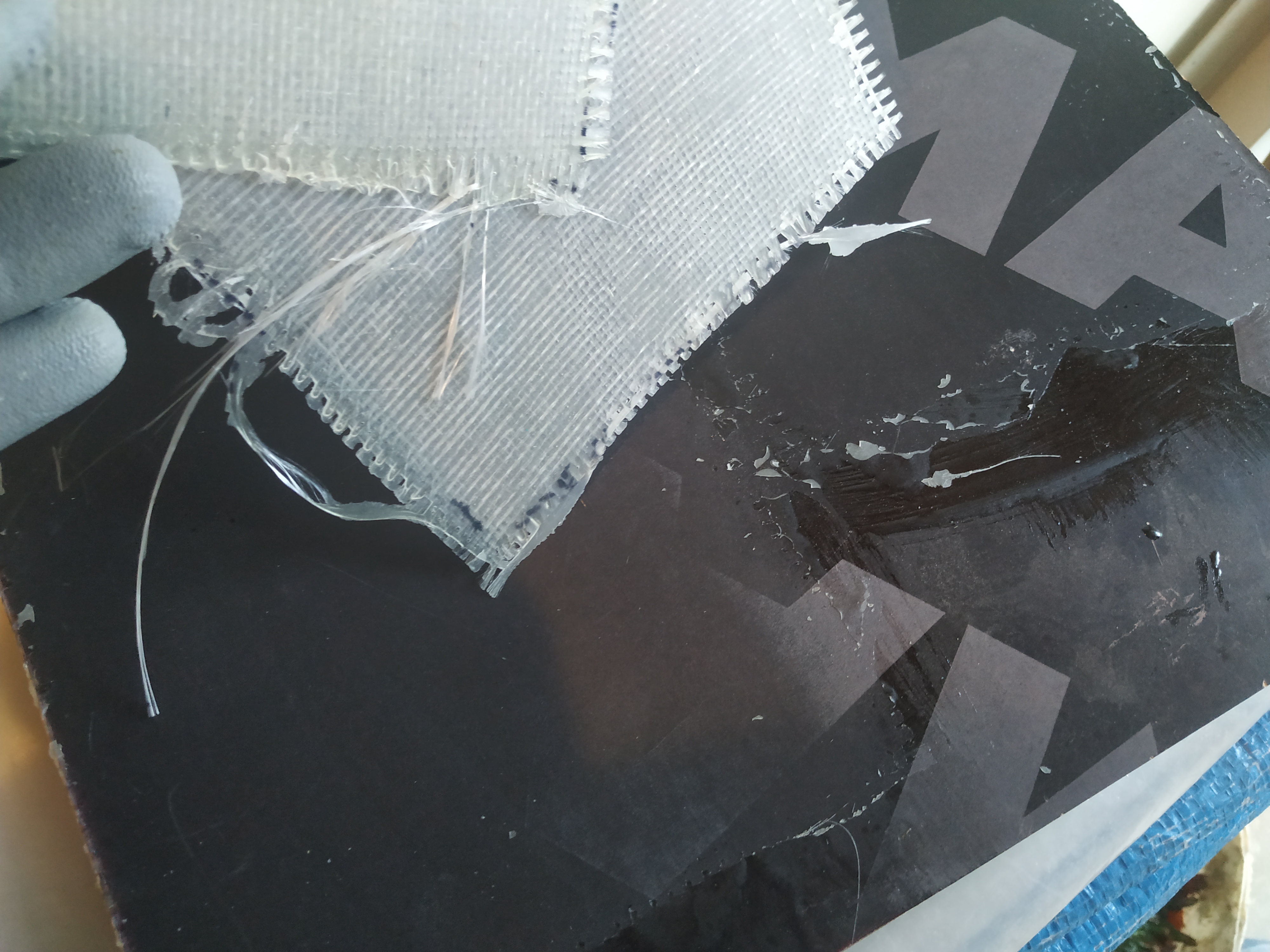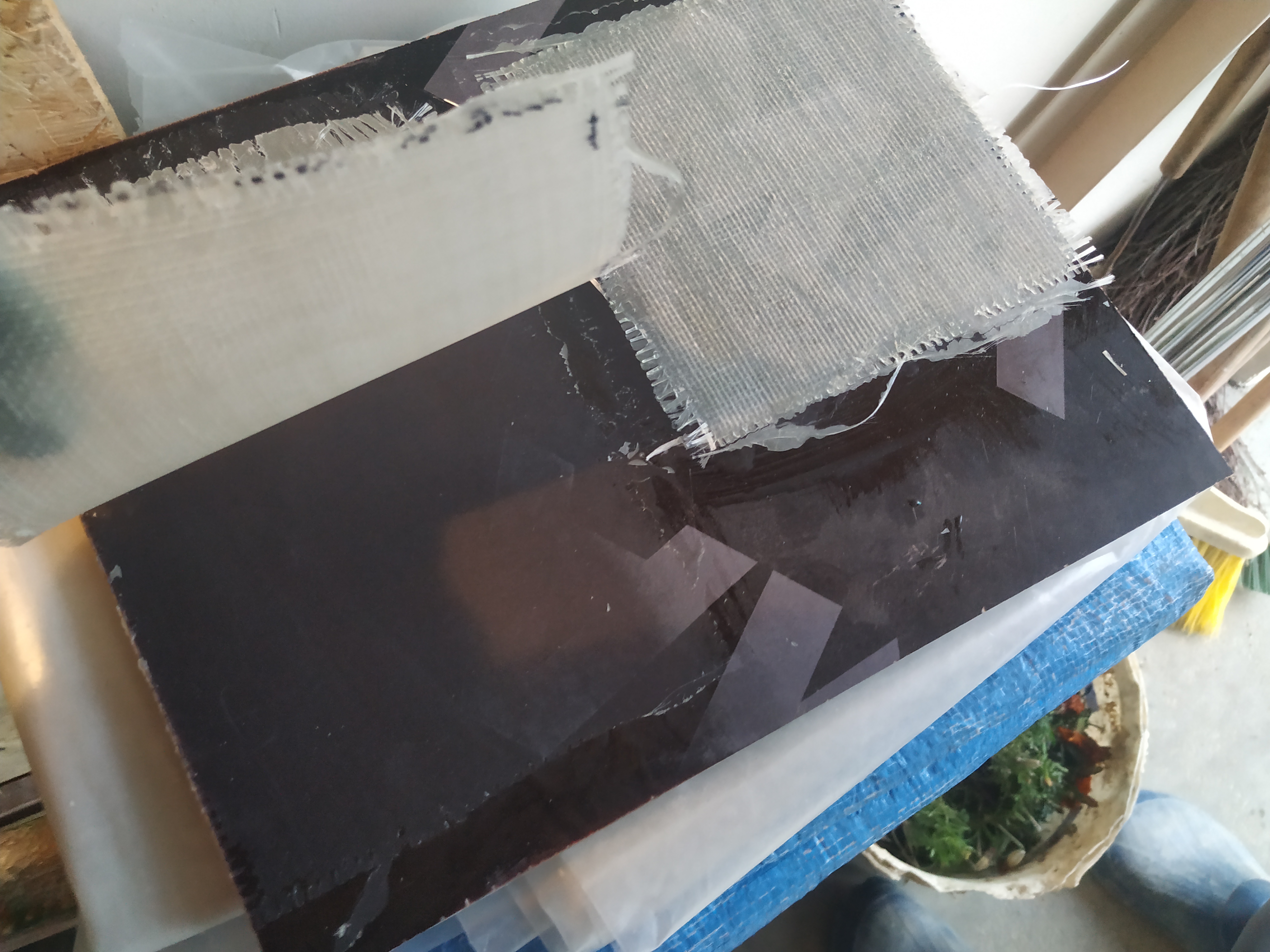 3. Czy można do powierzchni z filmem fenolowym laminować skutecznie matę, żeby połączyć podłogę ze ścianami jak w oryginale? - Jutro się okaże, czy na testowym kawałku zostawionym na noc, łapie bezpośrednio lub na zmatowionym. - Żywica poliestrowa nie łapie ani bezpośrednio ani na zmatowionym, pewnie trzeba by drzeć do gołego drewna. Natomiast bardzo ładnie wychodzi jakby ktoś potrzebował zrobić kawałek laminatu to polecam taką sklejką jako szalunek do którego nie wiąże żywica.