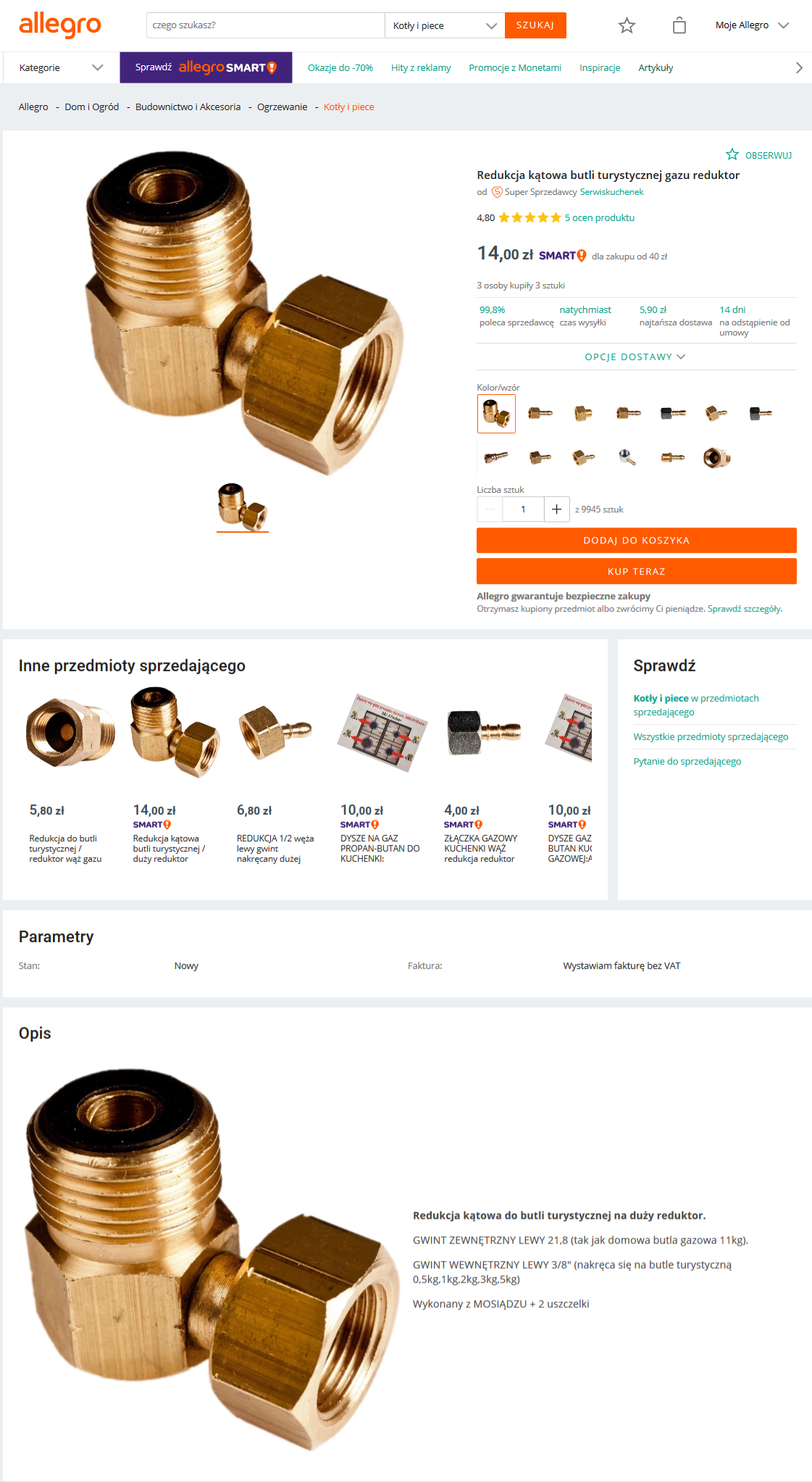 Pół roku szukałem w supermarketach i sklepach hydraulicznych "kolanka" do butli gazowej. Nikt takiego cuda nie widział. Miałem zamiar podjechać do sklepu specjalistycznego gazowego ale nigdy czasu nie miałem.
