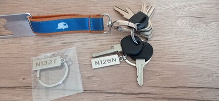 Obie przyczepy dostały dedykowane breloczki z własnymi numerami rejestracyjnymi. Na jednej stronie typ przyczepy, nr na drugiej.