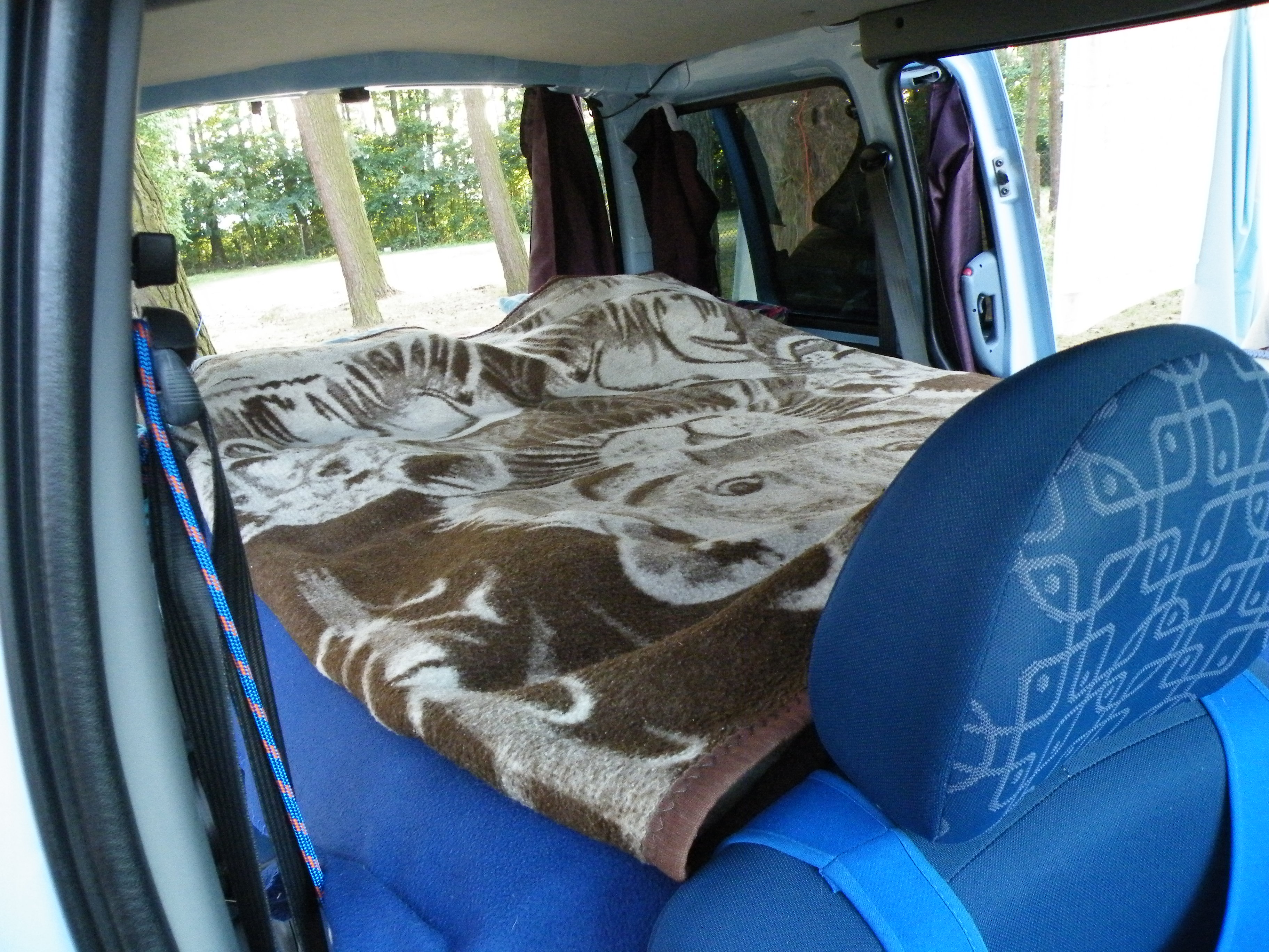 Ja spałem w oplu combo na dwuosobowym materacu, po rozłożeniu tylnych siedzeń było super. Spałem też w swoim obecnym connect-cie na tylnym siedzeniu, ale było srednio, bo mają "boczne trzymanie d...py", więc siedzenie nie jest prostą kanapą. Po rozłożeniu jeszcze nie próbowałem.