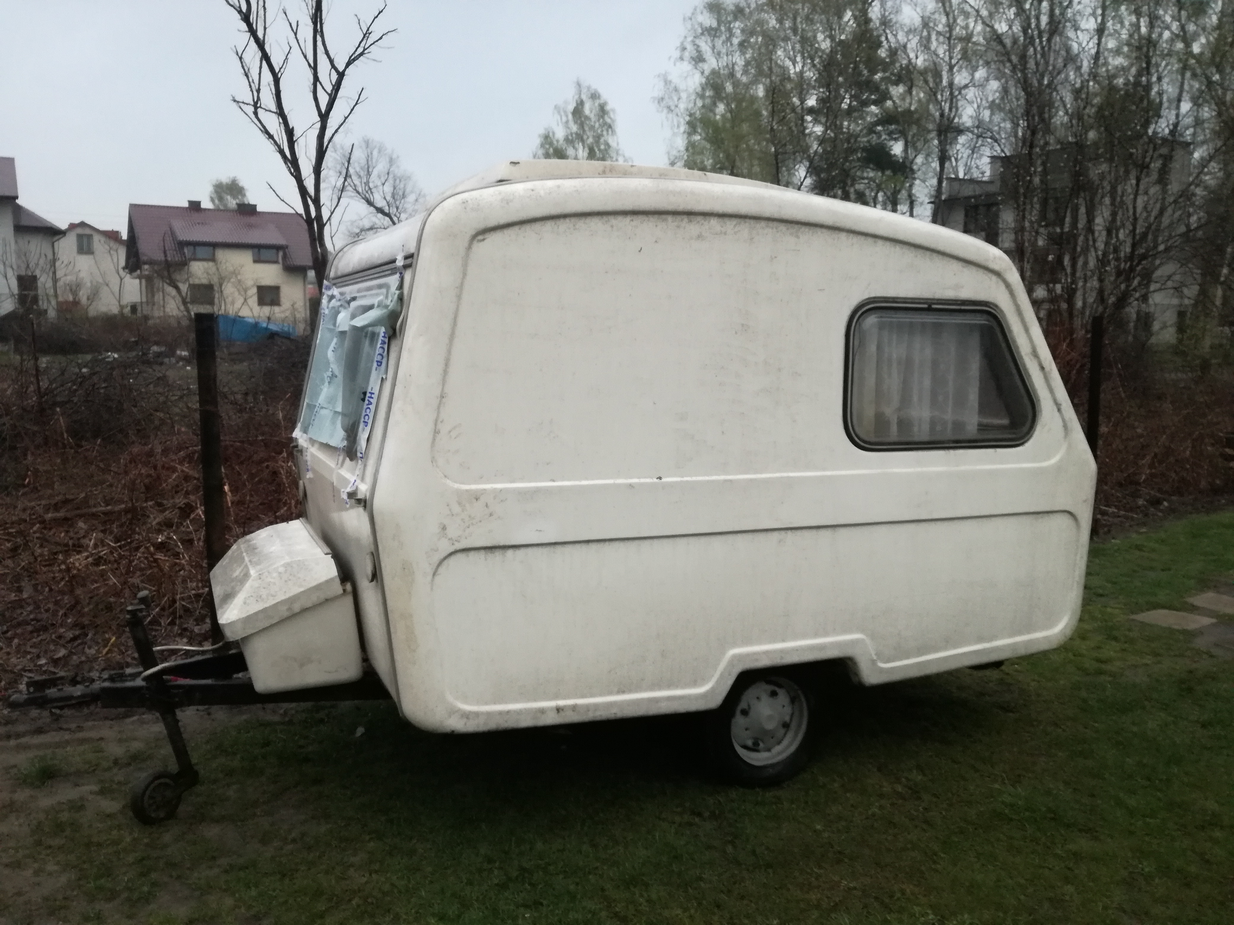 Trafiłem w okolicy przyczepę bez dokumentów pustą w środku szyby boczne całe, przednia uszczelniona na stałe tylnia pęknięta.
