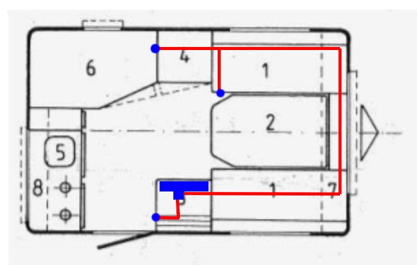 Ja też uważam, że wylot przy drzwiach to dobry pomysł. Jak napisał Andrzej, od kratki wieje i właśnie dlatego warto go mieć. Kratki całkiem zasłonić nie można bo wentylacja wnętrza musi być zachowana ale dzięki wylotowi fajnie miesza się świeże powietrze z ogrzanym z wnętrza przyczepy. Zresztą wieje nie tylko od kratki, drzwi po obwodzie też nie są całkiem szczelne.