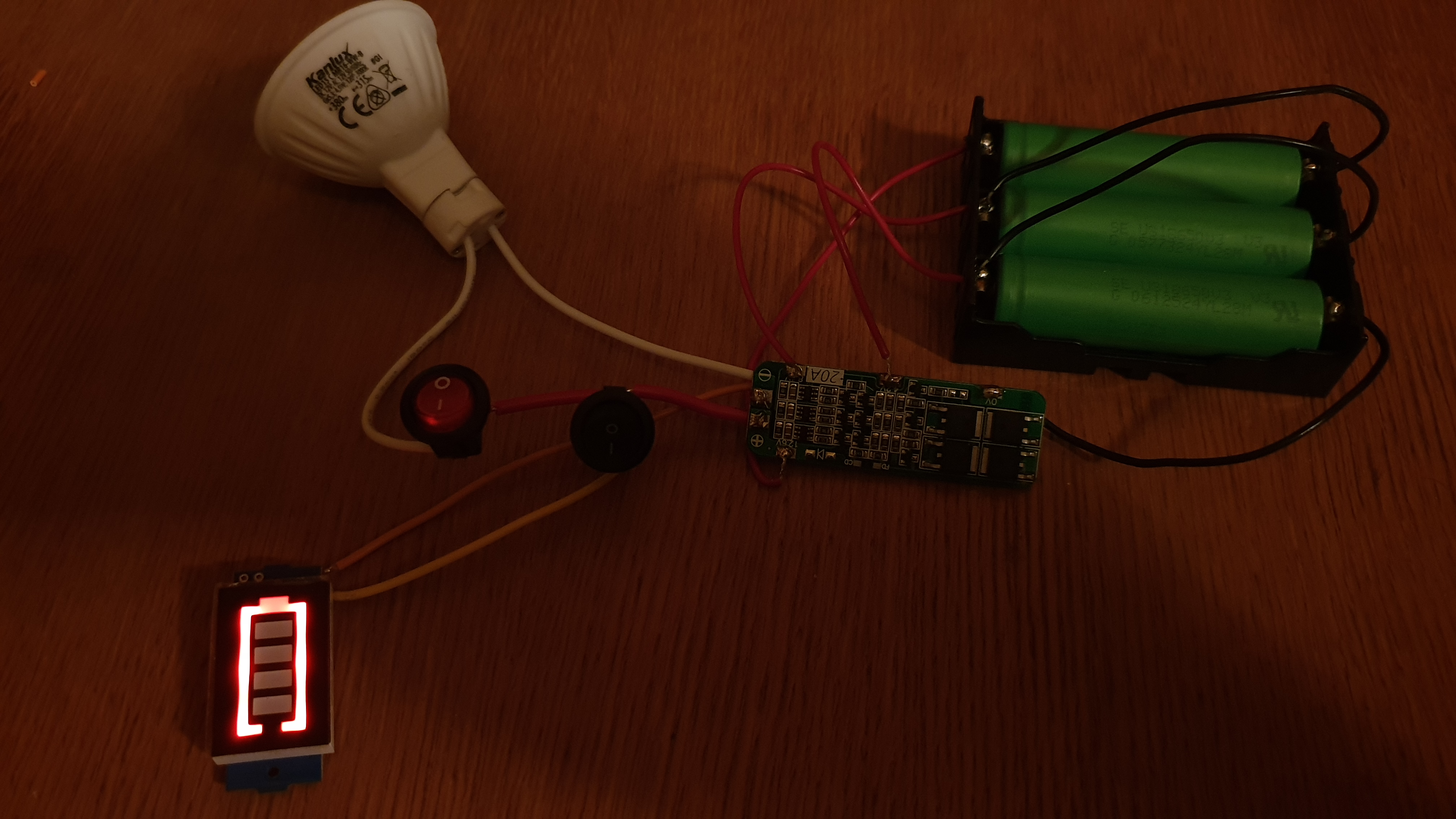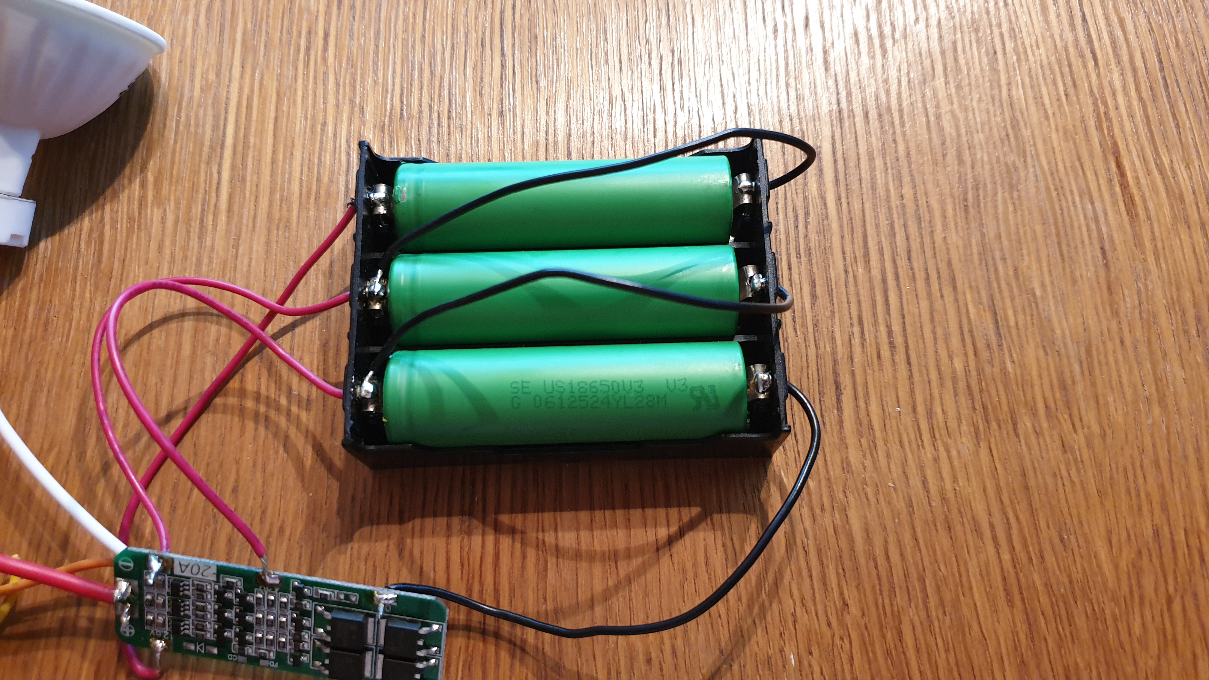 Moduł wygląda, że działa prawidłowo. Gdy napięcie na ogniwach spadło do 2,8V odciął odbiorniki żeby zapobiec nadmiernemu rozładowaniu. Kontrola ładowania też całkiem nieźle, na początku widać było na amperomierzu stały pobór, a po jakimś czasie jak ogniwa wzrosły do około 4V moduł zaczął pobierać coraz mniej i z przerwami czyli próbkował ogniwa żeby nie przeładować. Zastanawiam się jeszcze co z kontrolną napięcia ładowania bo gdy podałem zasilanie około 15V to moduł nie zaprotestował, ale pchał w akumulatory prawie 8A. Co prawda palcowa kontrola temperatury ogniw przy takim ładowaniu nie wykazała zbyt niepokojących wyników, ale to jednak trochę za dużo. Poza tym temperatura była akceptowalna, ale to jednak wersja "desktop" i w zamkniętej puszce/lampie do tego w ciepły letni dzionek ogniwa mogą się już za bardzo rozgrzać.