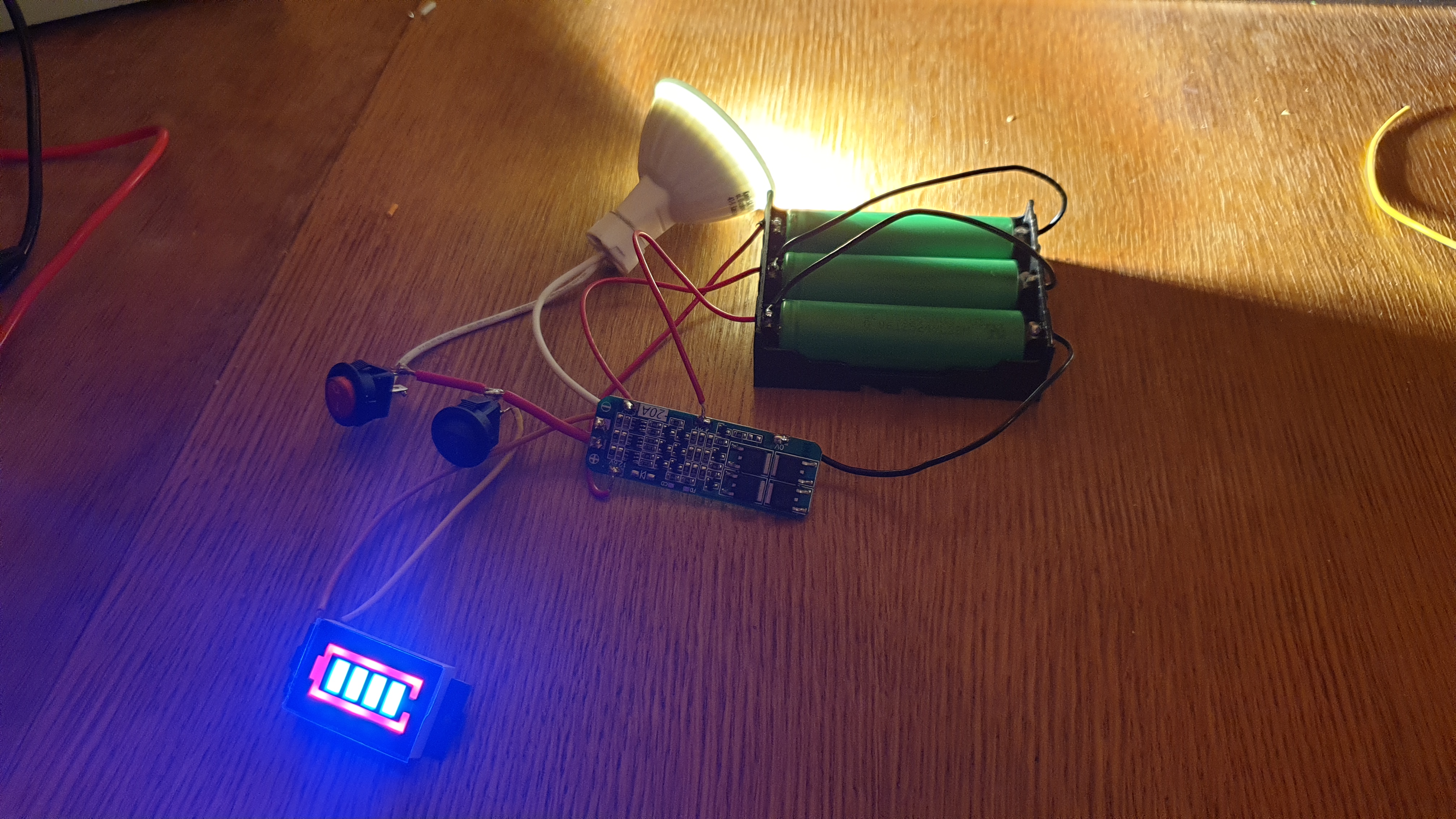 Cały ten plan ma jedną wadę i już na początku wymaga odpowiednich warunków do ładowania. 3 ogniwa li-ion to 12,6V, więc do ładowania będzie wymagane pełne słońce na solarze lub odpalone auto bo aku w stanie nazwijmy to "spoczynku nocnego" będzie miał za małe napięcie żeby ładować lampkę. Zobaczę na pierwszych wyjazdach na ile to rozwiązanie będzie problematyczne. Jeżeli okaże się, że uzyskanie napięcia wyższego niż 12,6V jest zbyt rzadkie to dorzucę jeszcze do układu przetwornicę step-up. Jednak żeby to zrobić muszę przeprowadzić dokładniejsze badania przetwornicy przy różnych napięciach dlatego na razie odpuszczam tę część projektu.