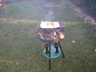 A grill to dobry najzwyklejszy okrągły na trzech nogach, w miarę potrzeb dostosowany wielkością pod swoje zapotrzebowanie na ilość użytych sztuk do pieczenia.