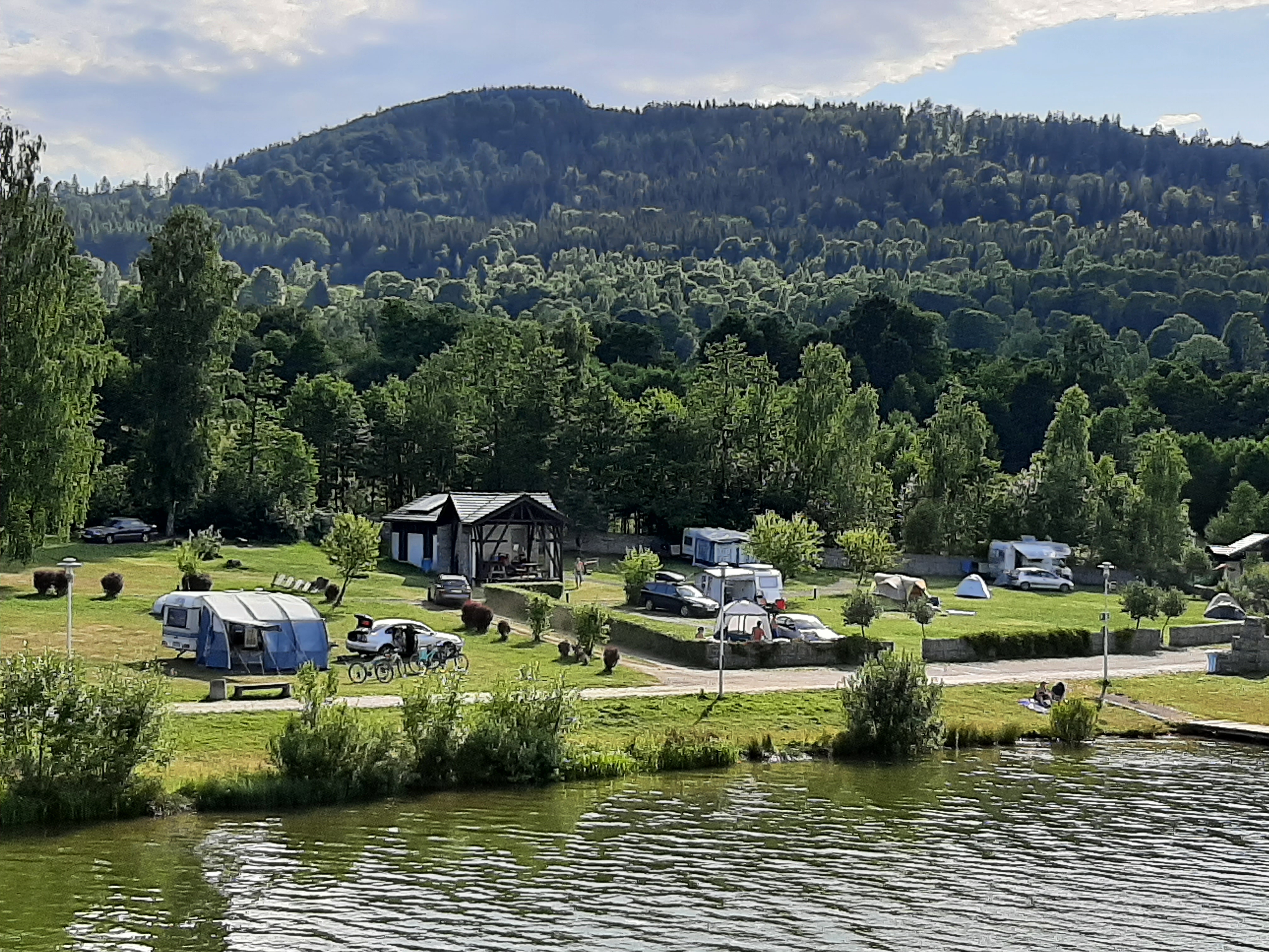 Teren pola biwakowego jest w całości trawiasty, równy ze spadkiem w kierunku zalewu bez wytyczonych parcel. Znajdziecie tam miejsca zacienione jak i w pełnym słońcu.