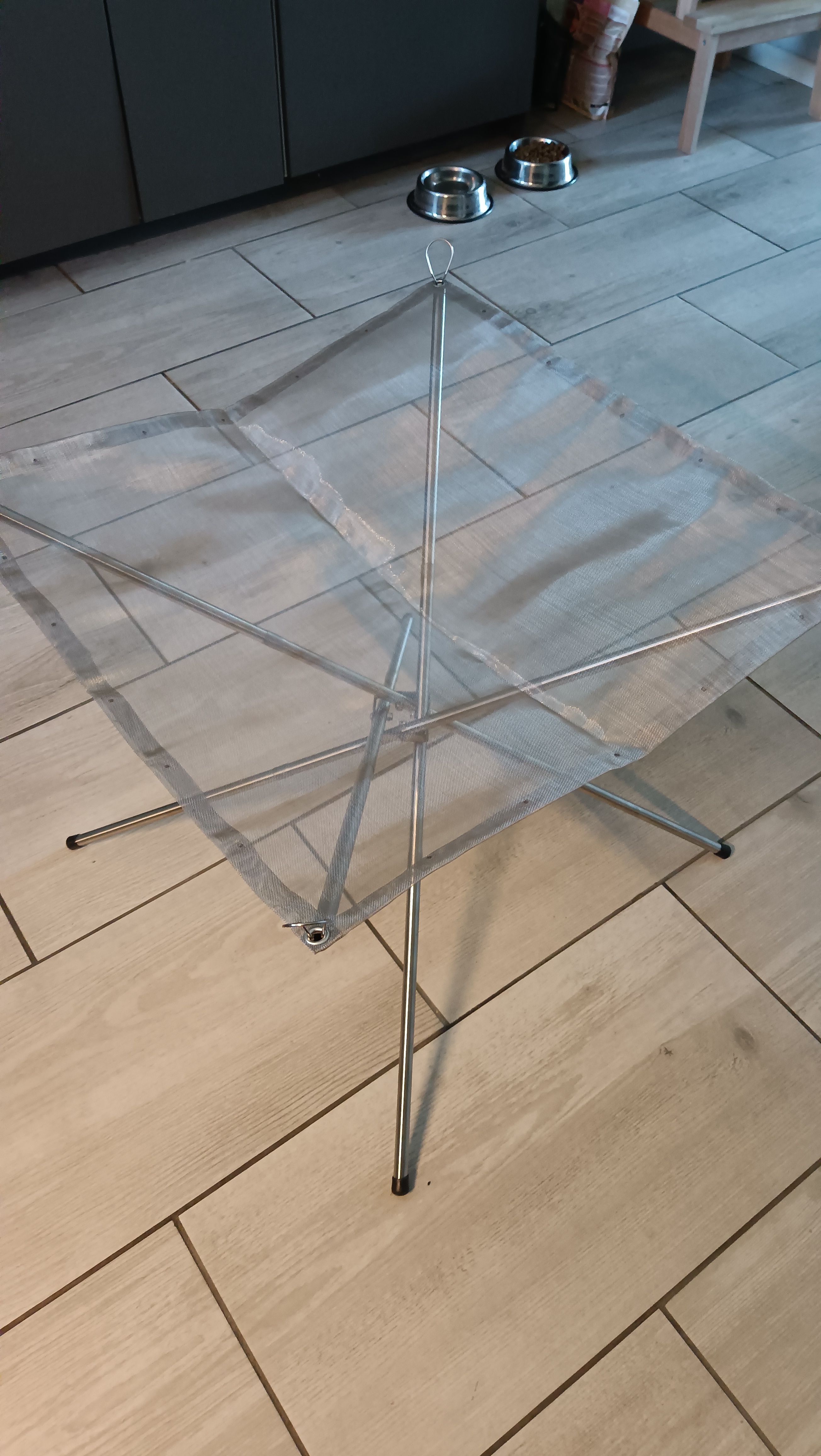 Wyszperałem takie cuś. W sumie to widziałem to już dawno na aliexpress ale jakoś nigdy nie kupiłem. Teraz trafiłem na całkiem pozytywne opinie na FB więc kupiłem. Składane palenisko. Nie zawsze można się dopchnąć do ogniska, a często można zrobić ogien na palenisku. Wszelkie michy odpadaja, bo duże i ciężkie a to malutkie i waży może z 1 kg. Rozmiar siatki 56x56 cm. Oczywiście nie da się na tym zrobić wielkiego ognicha ale na upieczenie kiełbasek wystarczy.