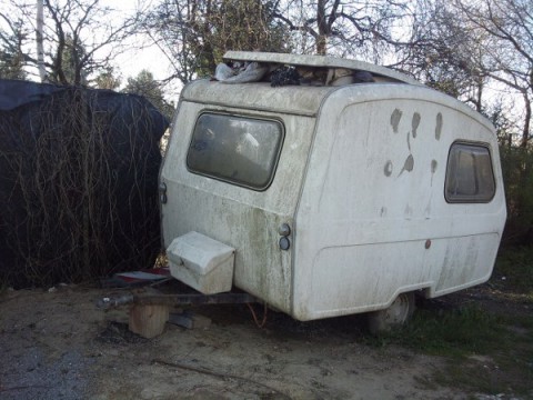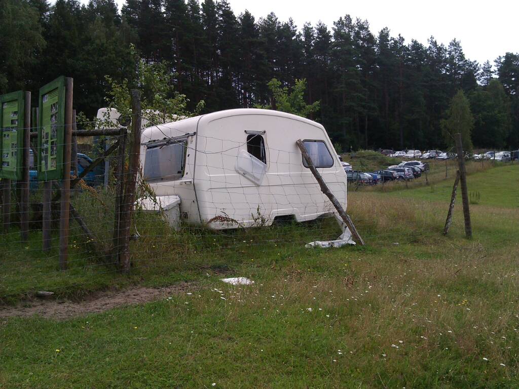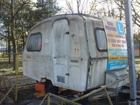 Właściciel chyba nigdy nie był na kempingu. Dach, patelnia i siedzenie w niewiadce z nieotwieranymi szybami przy piwie