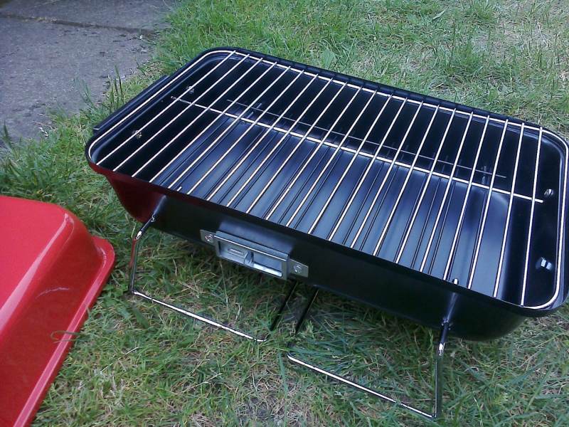 szybkie składanie i rozkładanie, ruszt pod węglem, pokrywa i przesłony, rączki po bokach... jakość raczej podła ale za 50 zł to całkiem całkiem