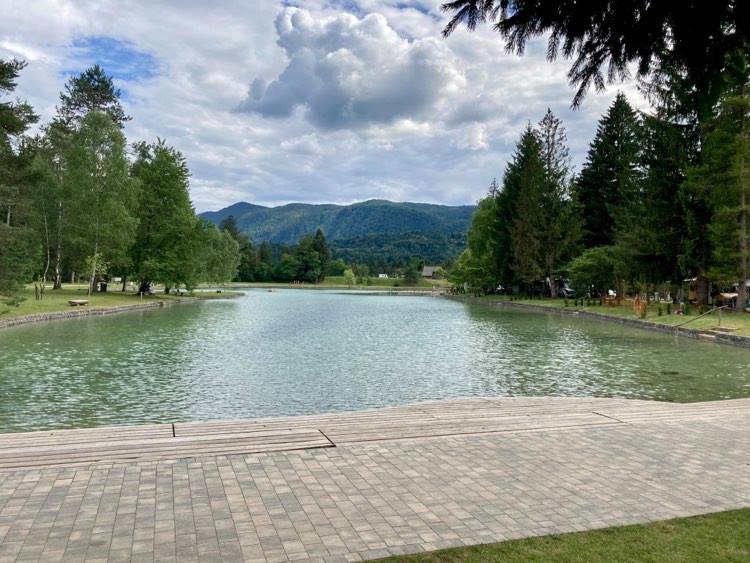 Kamping Sobec położony w zakolu rzeki Sawa niedaleko jeziora Bled w Słoweńskich Alpach. Jest to 5 gwiazdkowy kemping oferujący aż 5 różnych stref kempingowych. Znajdziemy tu parcele numerowane oraz ogromną strefę z niewyznaczonymi miejscami do postoju (rozbijasz się gdzie chcesz). Wysokie sosny dają wytchnienie od słońca, które potrafi tu nieźle przygrzać. Do dyspozycji gości jest kilka sanitariatów o wysokim standardzie, pralnia, przechowalnia rowerów i wypożyczalnia, miejsce do mycia rowerów i serwisu, prysznic dla psów, lodówki (dla tych co nie mają), kamper serwis, świetnie zaopatrzony market z normalnymi cenami, restaurację i bar. Na terenie ośrodka znajduje się również jeziorko z strzeżoną plażą, boiska sportowe, korty tenisowe i minigolf. Kamping spełnia podstawowe kryterium jakim jest cisza i spokój. W okolicy znajdziemy mnóstwo atrakcji. Jezioro Bled z jedyną wyspą w Słowenii, trasy rowerowe i szklaki turystyczne, jezioro Bohnij, tyrolki, raftingi, kajaki i supy etc. Warto przyjechać tu na dłużej. Kemping odwiedziliśmy przy okazji powrotu z Chorwacji tym razem nie traktując Słowenii tylko jako kraju tranzytowego. Jest to piękny kraj i moim zdaniem mocno niedoceniony. Warto zatrzymać się tu na dłużej.
