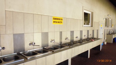 - bardzo dużo stanowisk z CIEPŁĄ WODĄ do zmywania i oddzielne do obierania ryb;