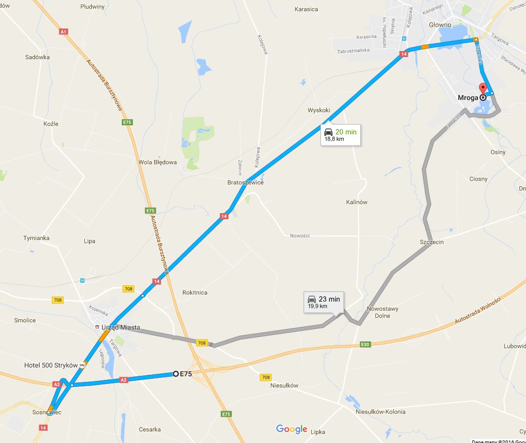 Poniżej zamieszczam mapkę dojazdu z węzła Łódź Północ - kierunek Poznań, Łódź, natomiast jadący od Poznania za bramkami na A2 nie dojeżdżając do węzła Łódź Północ muszą kierować się na zjazd na Łódź, Stryków, dalej obowiązuje już trasa z załączonej mapki.