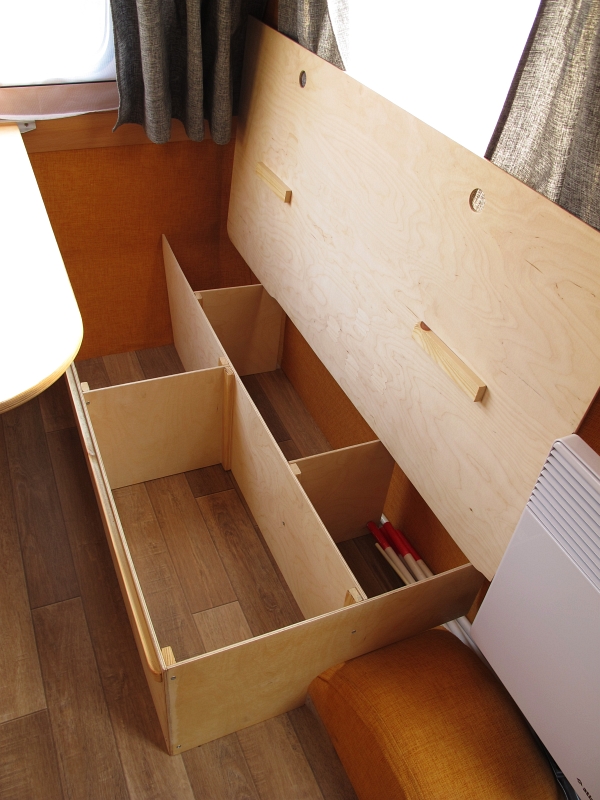 Bardzo podobają mi się zasłony i materace, nadają wnętrzu trochę nowocześniejszy wygląd. Fajne trzasnąłeś też te niebieskie pasy po bokach przyczepy.