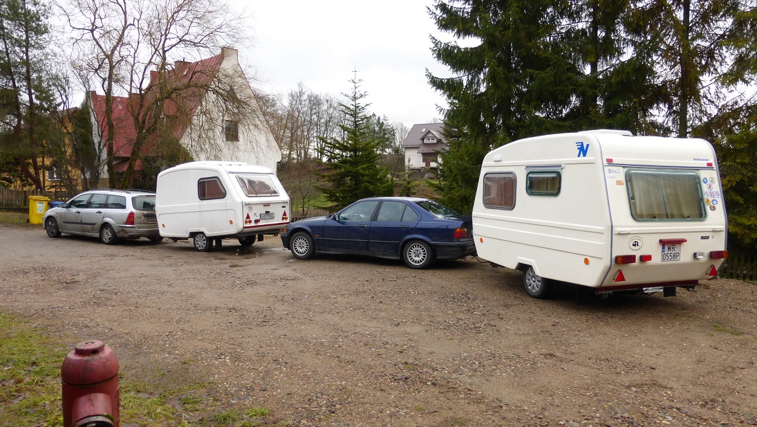 Sami, sami - w tle przyczepy zimujące i samoroczne. Tzn. byli oprócz nas goście, ale w domkach.