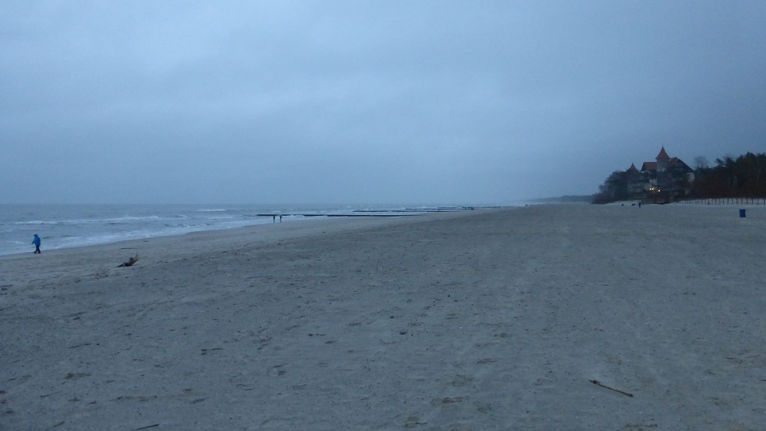W międzyczasie wiatr przybierał na sile a deszcz się wzmagał. Uraczeni Stacha winkiem i nie tylko, we dwóch wybraliśmy się nad morze, zobaczyć czy się rozbujało.