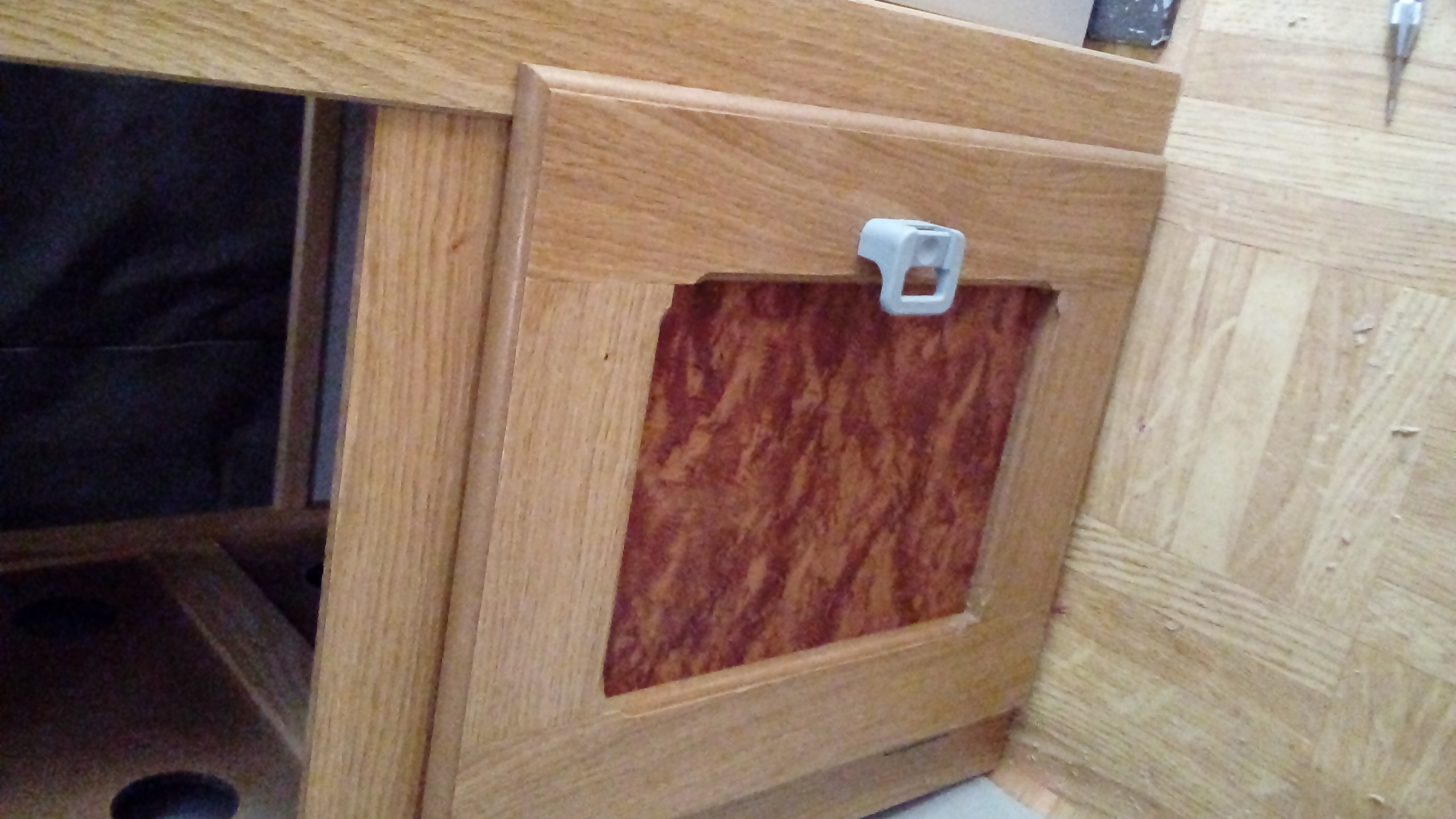 Teraz jest dobrze, czekając na zamki okleję szuflady w środku cienkim filcem, uniknę w ten sposób obijania się przedmiotów schowanych w szufladzie podczas jazdy.