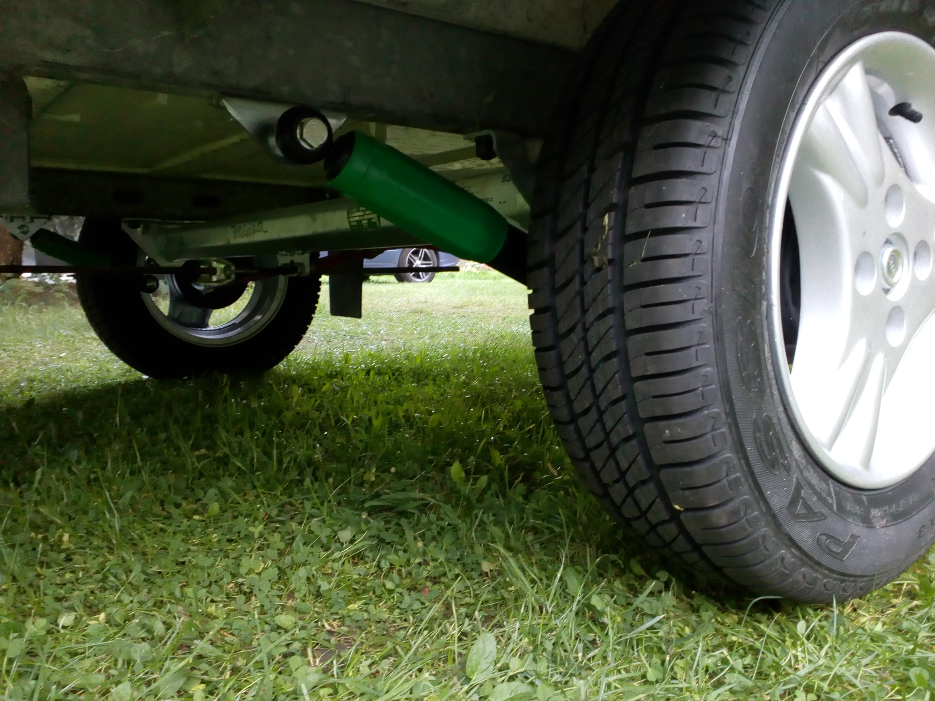 Teraz w sandwiczu mam Dębica Passio ale z oznaczeniem XL i podniesionym indeksem nośności do 690 kg na sztukę. Trochę droższe od zwykłych ale spokój święty na kilka lat. Wiadomo, że nasze przyczepy raczej tyją niż chudną więc lepiej kupić z lekkim zapasem nośności. Wystrzał opony do żadna przyjemność. Przerabiałem, nic na szczęście się nie stało ale gacie pełne