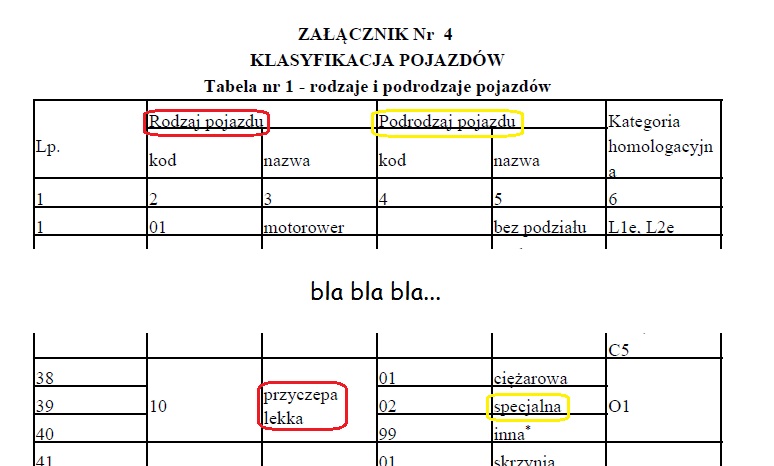 A jak mam w CEPiK'u? Tam jest już cały ciąg: rodzaj>podrodzaj>przeznaczenie, czyli lekka>specjalna>kempingowa:
