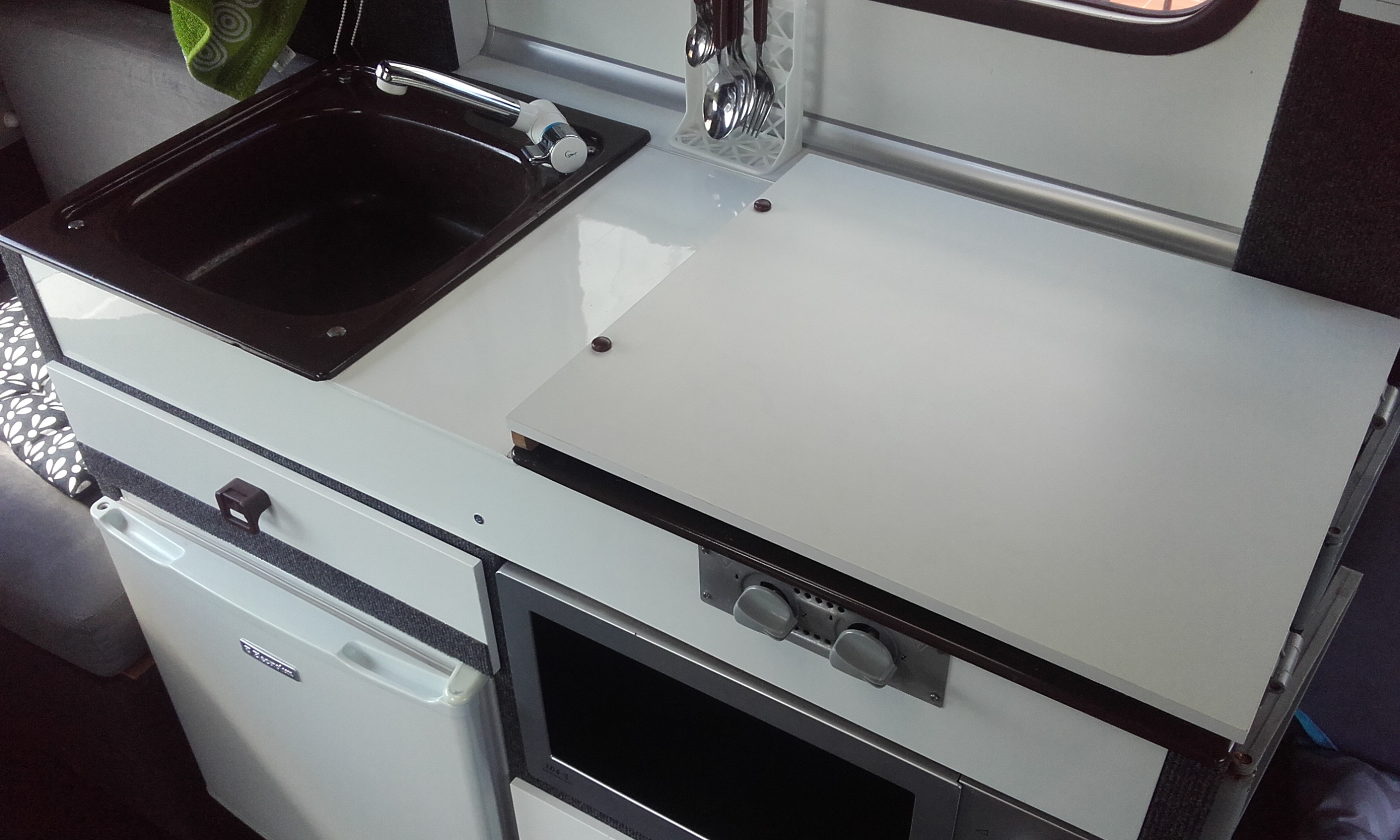 Ciągle otwarty zlew dość mocno ogranicza blat roboczy, a w momencie używania kuchenki praktycznie nie mamy go w ogóle.