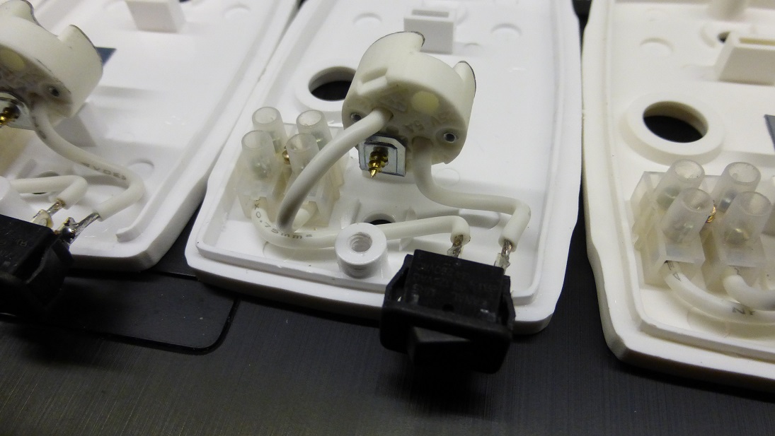 Potem przyszła kolej na przełącznik. Jedyna opcja montażu to wypiłowanie w kloszu podcięcia w które wejdzie na wcisk. Zdejmując klosz zawsze można go łatwo wysunąć. Materiał klosza bardzo wdzięcznie się obrabia, chwila moment i gotowe: