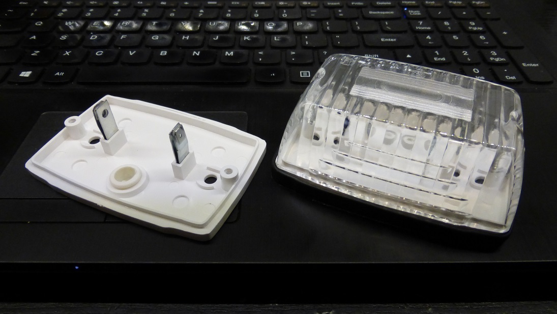 Montaż w oryginale nie wchodził w grę bo te lampki przeznaczone są na jedną rurkową żaróweczkę C5W. Najprostszym rozwiązaniem byłby ledowy zamiennik takiej żaróweczki ale z nimi jest ten problem, że świecą słabiej niż chcę ale też z reguły dostępne są z zimną barwą światła. Najmocniejsze jakie znalazłem które zamiast rurki miały płytkę z ledami, dalej były za słabe i "za zimne". Taśma led nie wchodziła w grę bo lampa jest za mała żeby upchnąć zadowalającą ilość.