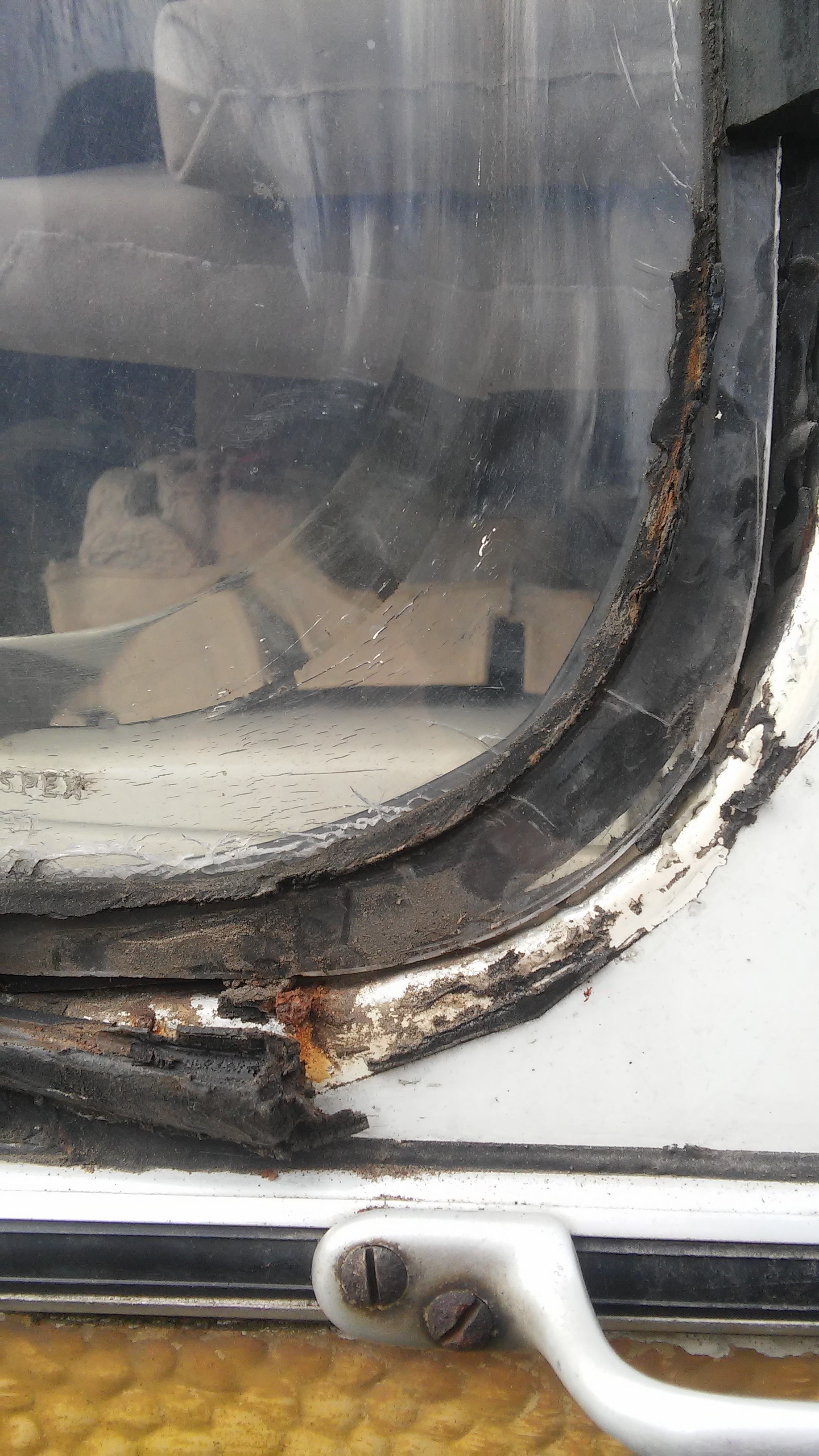 A tu jest przyczyna rozerwania uszczeli w dolnym rogu, tj profil szyby nie zgadza się z ramą. To miejsce się przetarło i zmusiło mnie w końcu do działania. Ciekawe czy to partanina fabryki czy garazowa wymiana szyby.