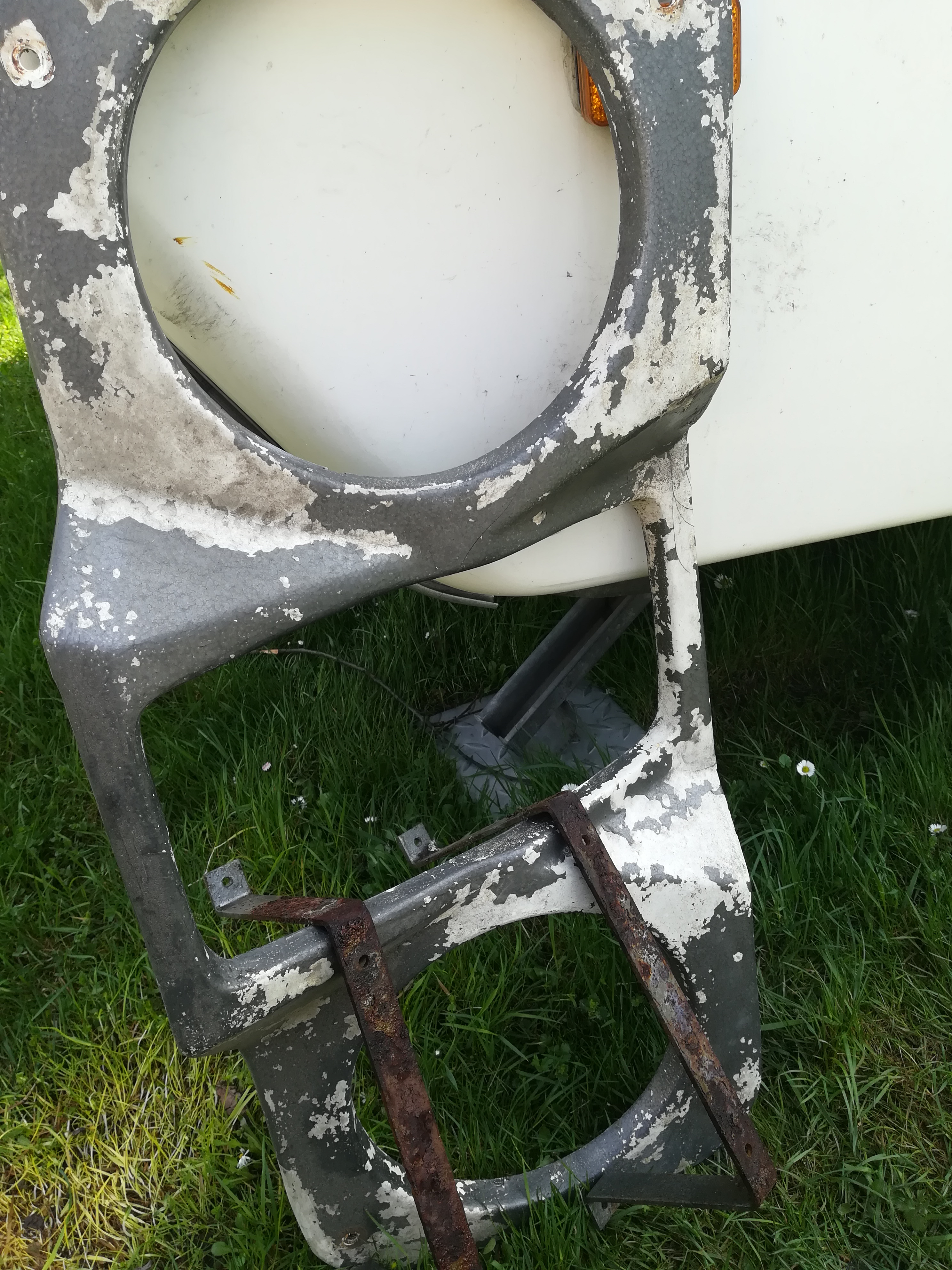 Wnętrze kufra do odświeżenia. Płaskowniki pokryte rudą. Zeszlifuję je i zobaczymy co pod spodem. Może potraktuje Hamerajtem i po kłopocie. Natomiast ten organizer na butle do lekkiego przeszlifowania i pomalowania.