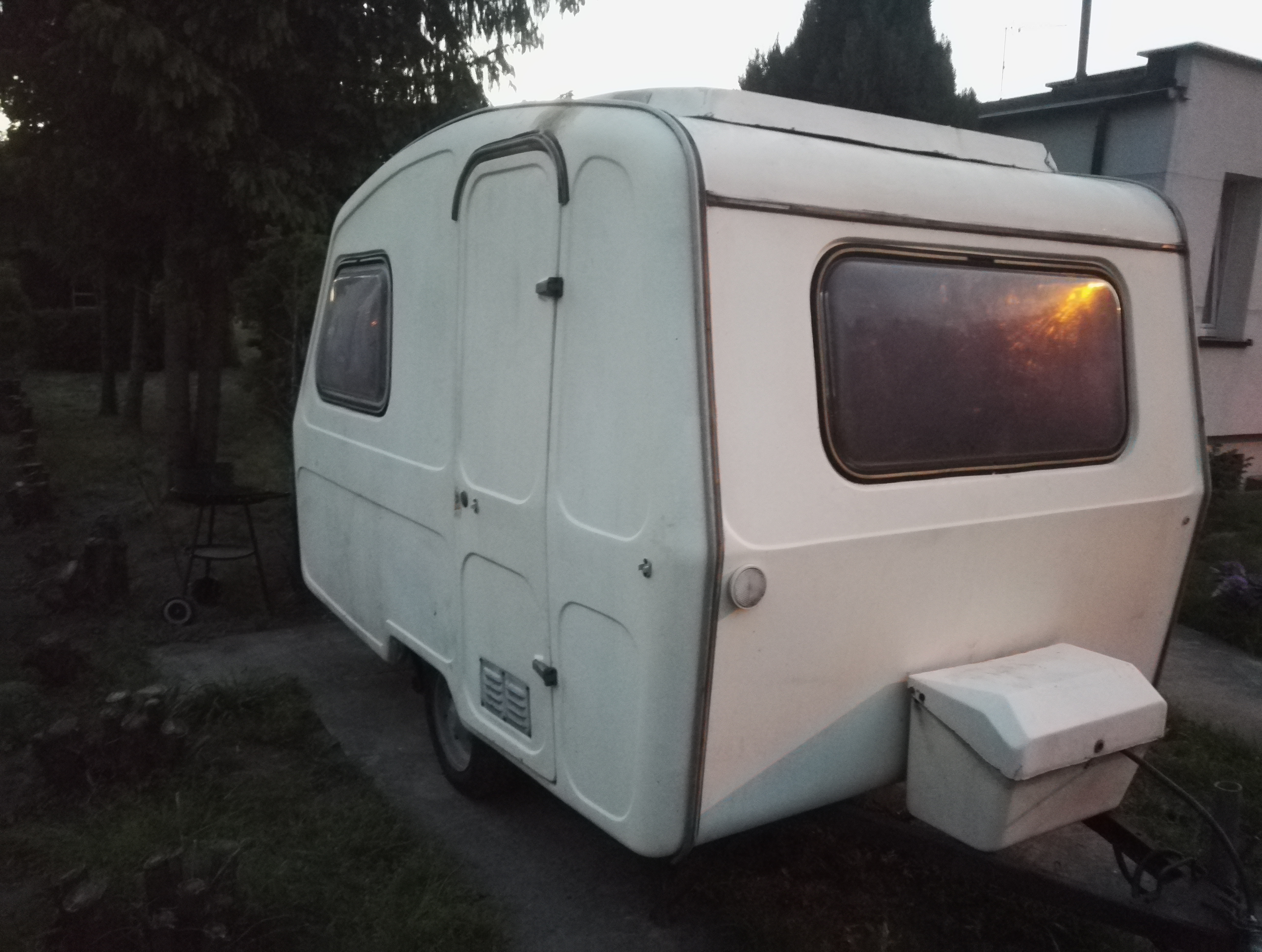 Mam na imię Wojtek i dokładnie we wtorek stałem się właścicielem n126b z 1978r. Przyczepka została zakupiona dość spontanicznie. W poniedziałek w nocy dziewczyna zobaczyła ogłoszenie w internecie ze jest na sprzedaż "niewiadówka" od razu dała mi o niej znać. Jednogłośnie stwierdziliśmy że przyda się póki co na działkę, a później będzie stanowiła idealny zestaw z moim maluszkiem z '77r. Więc we wtorek pojechaliśmy po nią i stanęła na podjezdzie. Przyczepka jest oczywiscie przeznaczona do remontu, a także brakuje w niej paru elementów wyposażenia. W planach jest jej jak najszybsze wyremontowanie w miarę możliwości czasowo-pienieżnych. ;)