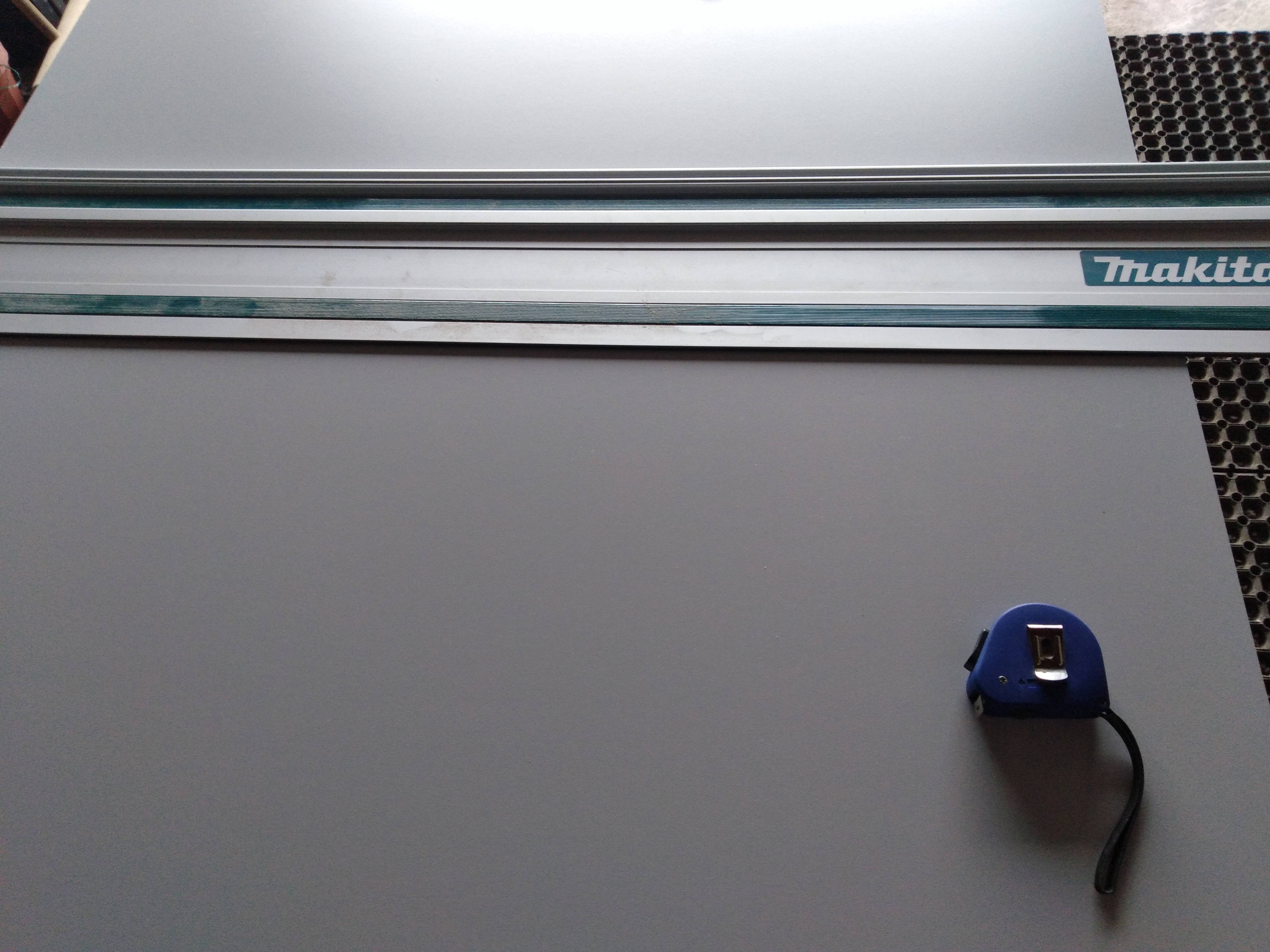 Cięcie za pomocą zagłębiarki jest dziecinnie proste. Kładziemy płytę na równym, dużym stole i znaczymy na bokach odległość.