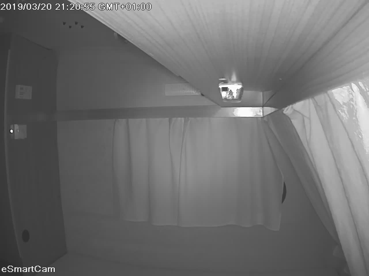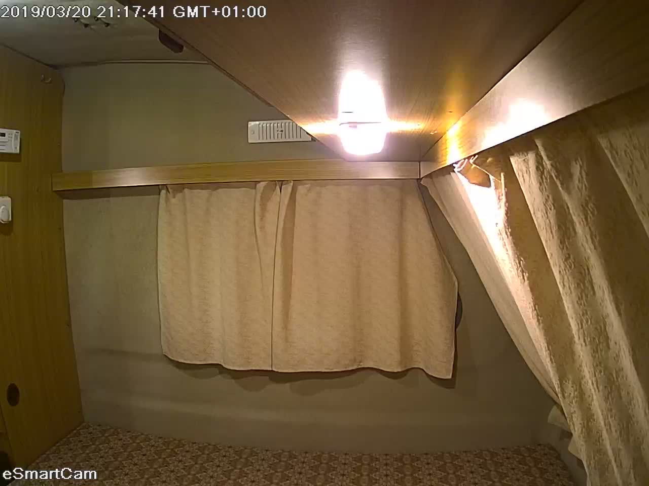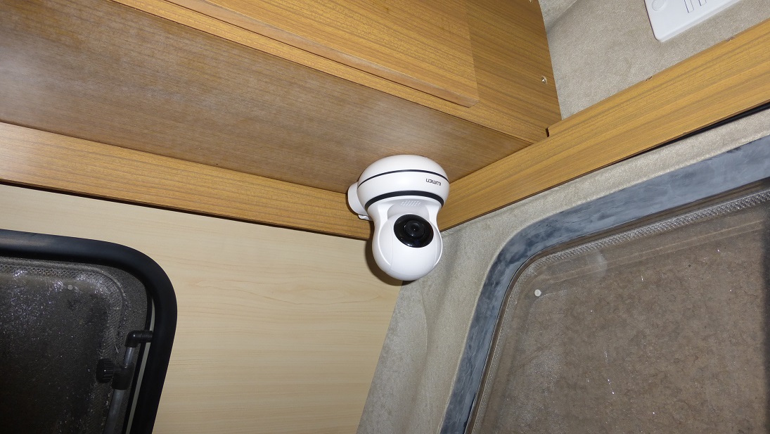 Kamerkę zamontowałem w pozycji wiszącej pod tylną półką, po stronie kuchni czyli po przekątnej do drzwi wejściowych.