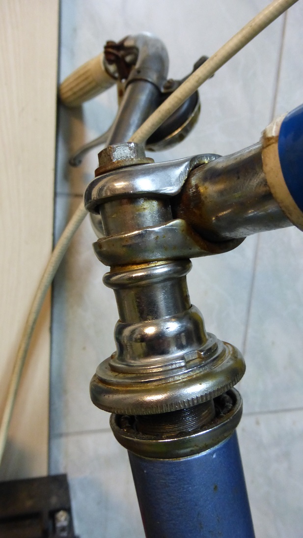Odkręciłem tę śrubę długą od góry i kluczem hakowym nakrętkę u dołu po czym poluzowałem pierścień i tym samym łożyska sterów. No i stanąłem w miejscu bo trzpień na który nasuwa się mocowanie, uchwyt kierownicy nie ma ochoty zejść więc nie mogę wysunąć do góry nakrętek żeby wyjąć widelec. Nie wiem czy jasno to opisałem.