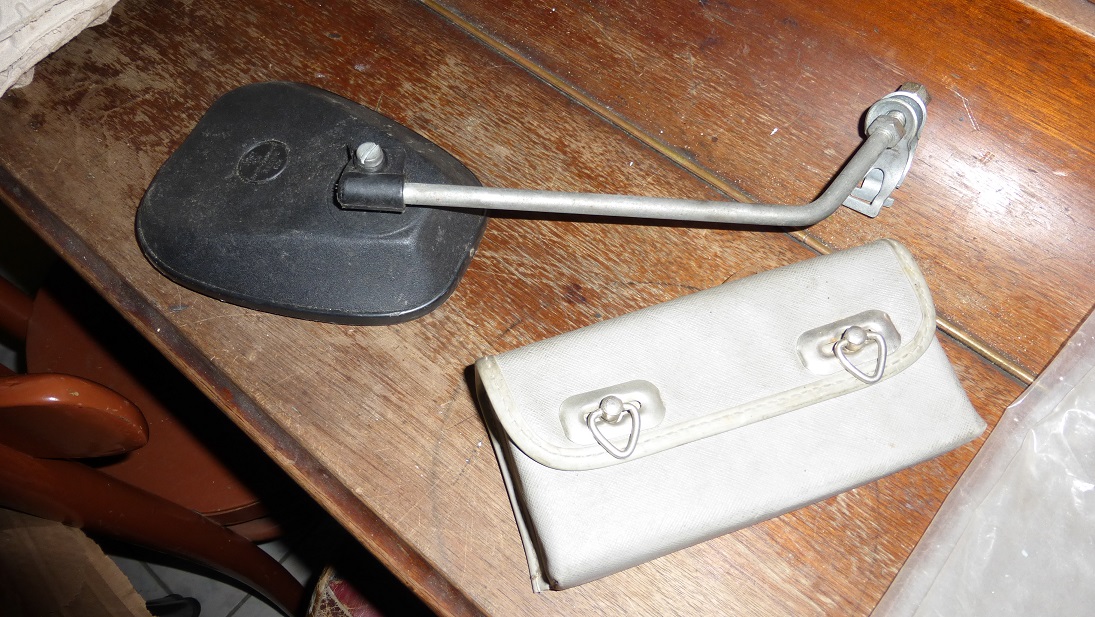 Na osłodę porażki ze sterami mam kilka fantów znalezionych w domowej graciarni. Jest pojemnik na narzędzia, oryginalny klucz i lusterko rowerowe radomskiej produkcji :)