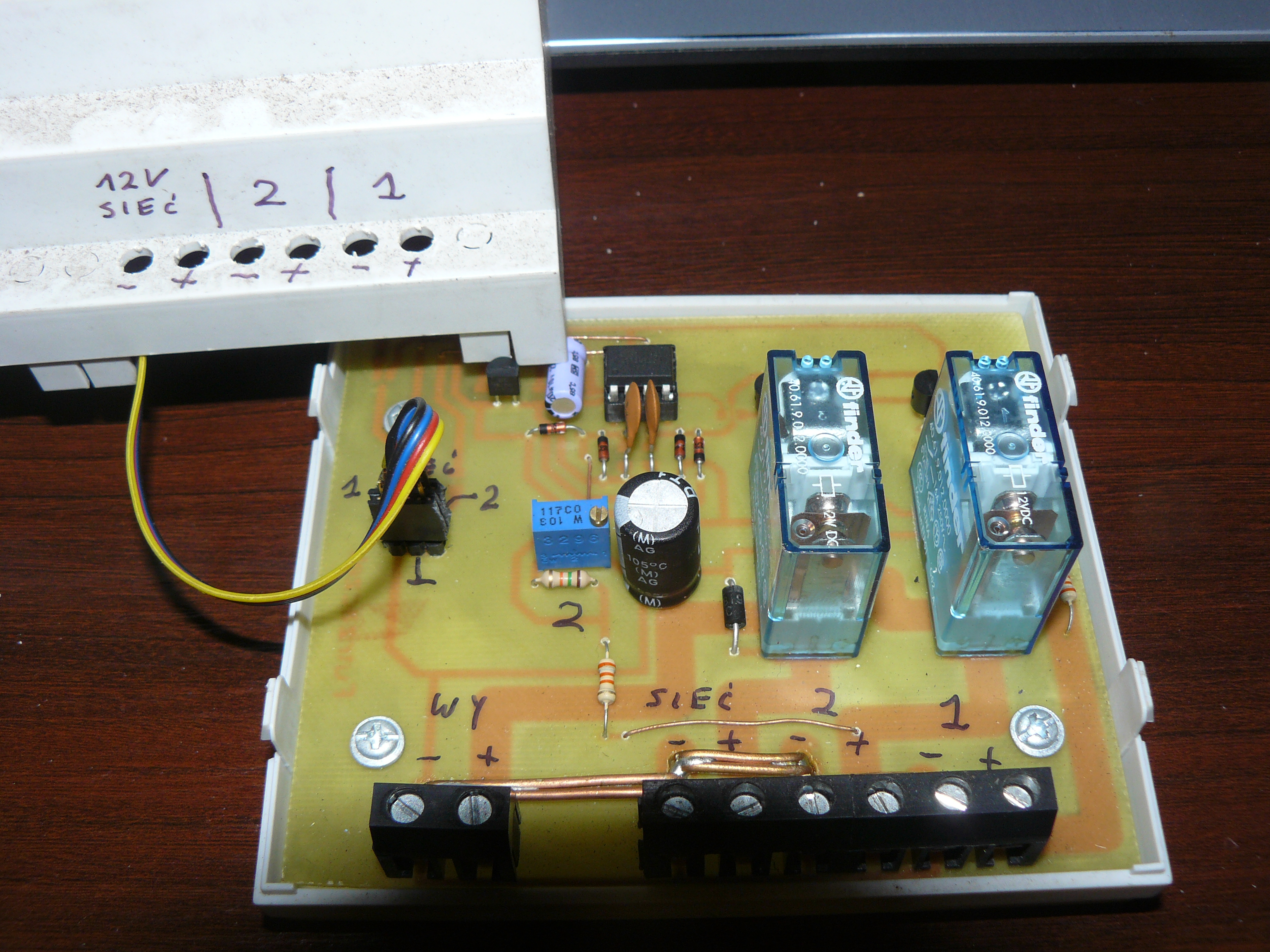 Zdjęcie poglądowe modułu 12DCV ( 230ACV pracuje cały czas w serwisie i nie chce mi się wydłubywać go z rozdzielnicy ) - płytka prototypu wykonana metodą chałupniczą.