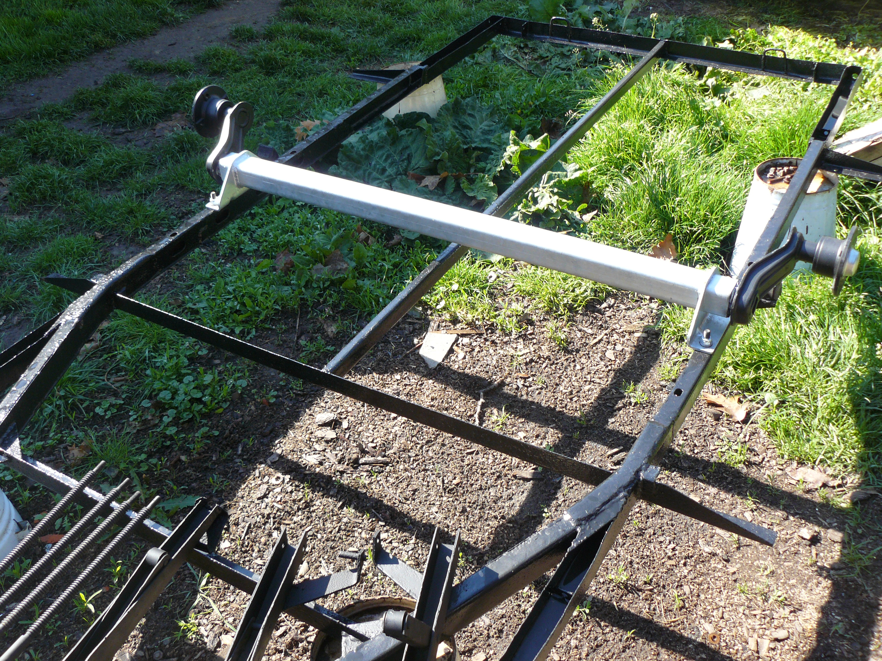 Przed remontem musiałem je wycinać więc obecnie zamiast pręta robiącego za ośkę wstawione są śruby 160mm M10 utwardzone 10.9 Z nakrętkami samokontrującymi. Podobnie śruby prowadzące podporę dostały nakrętkę samokontrującą.