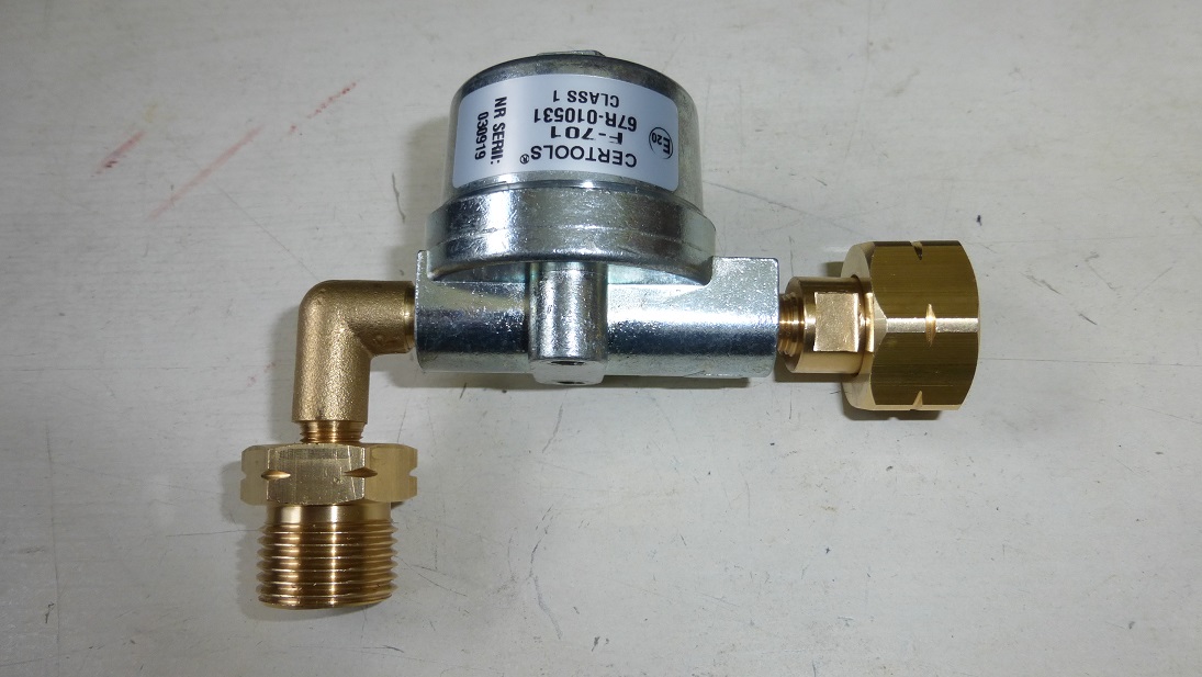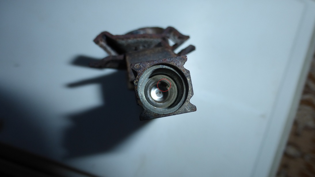 Aparat wyostrzył na początek korpusu palnika ale i tak widać o co chodzi. Zaznaczyłem w głębi ten osad. Niby nic bo pyłek ale dysza w lodówce jest malutkiej średnicy i wystarczyło aby ją zatkać. Stało się tak dwa razy więc trzeba było coś z tym zrobić bo taka niespodzianka po dojechaniu na miejsce to nic przyjemnego, do tego wyjmowanie lodówki z szafki żeby przeczyścić palnik. Założyłem filtr gazu taki jak stosuje się w wózkach widłowych.