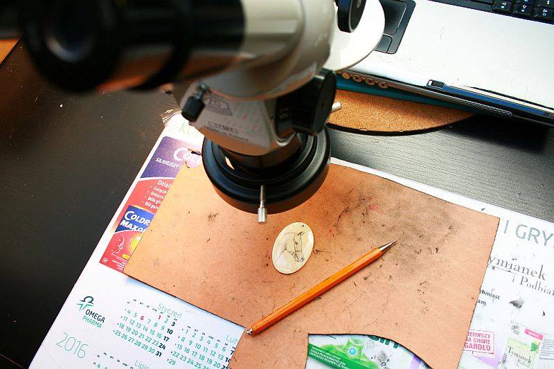 Czasami graweruję w stali, czasami w innych materiałach miękkich wykorzystując technikę scrimshaw.