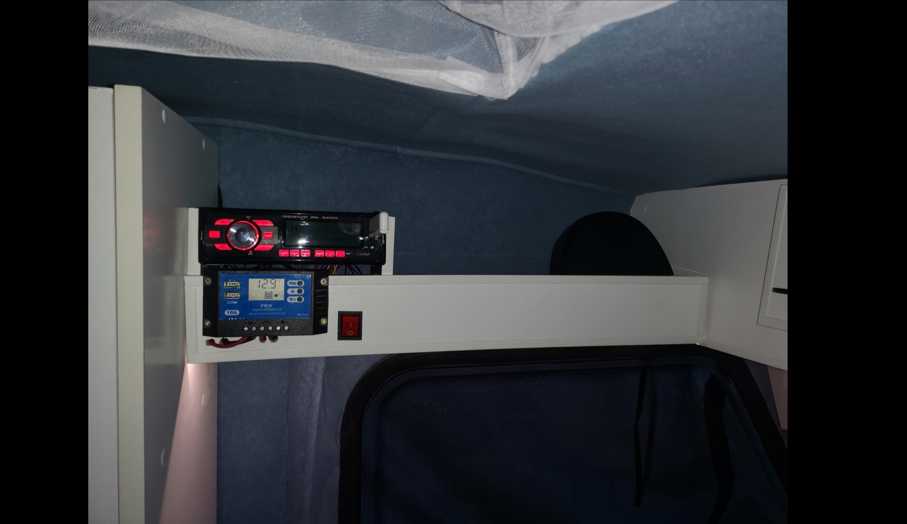Radio z bluetooth zamontowane do tego dwa głośniki, skromne (ale dające radę) Thomson. W całości gra przyjemnie. Wizualnie dodaje uroku. Dołożyłem jeszcze tylną zwijaną roletę.