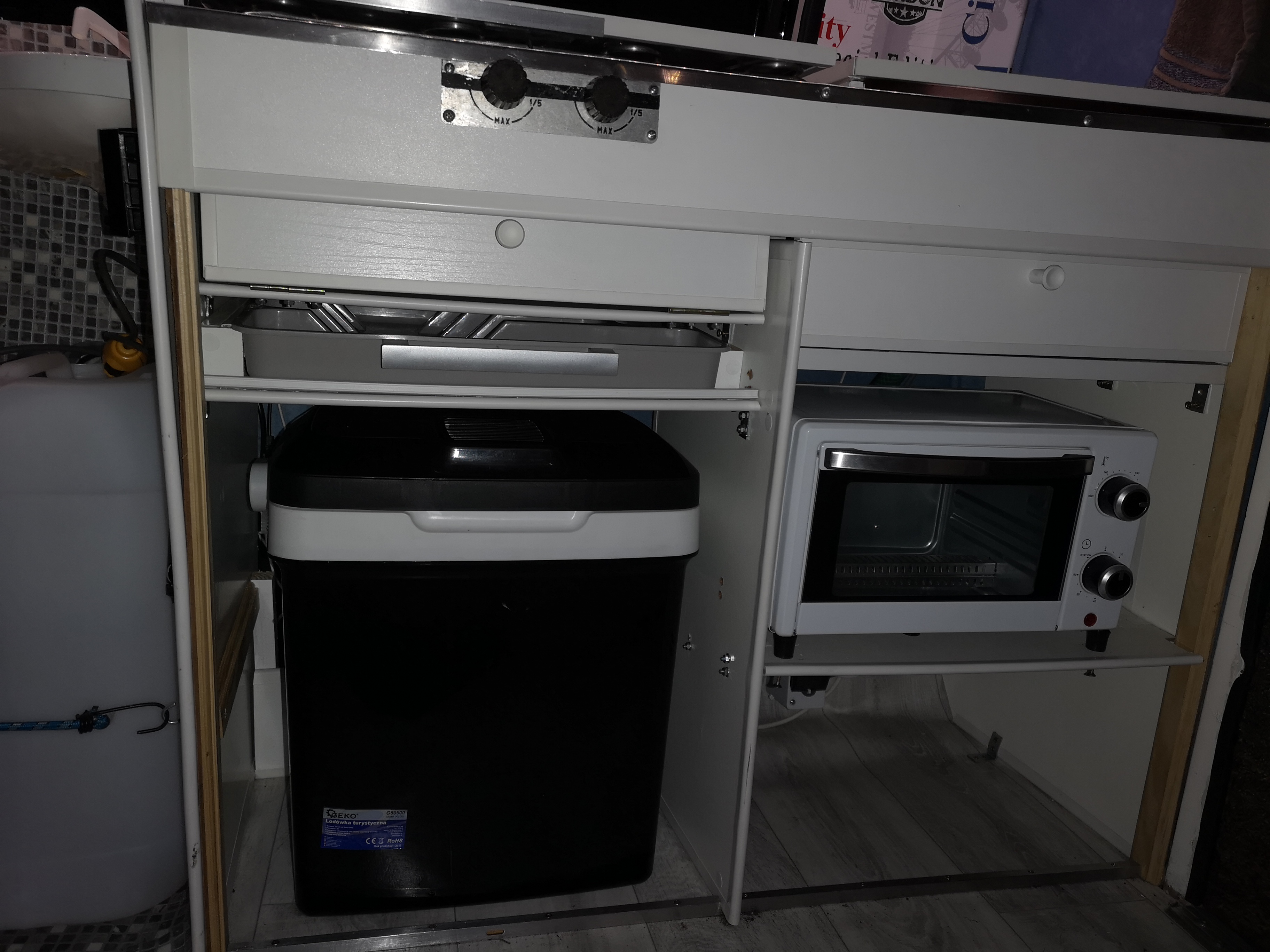 W pierwszej przyczepie też wstawiłem podobny wynalazek i miałem tylko jedną próbę użycia. Jak już chcesz w przyszłości kupować lodówkę na gaz, to rozważ tylko taką otwieraną z przodu. Te z góry też są dobre ale tylko na piwo