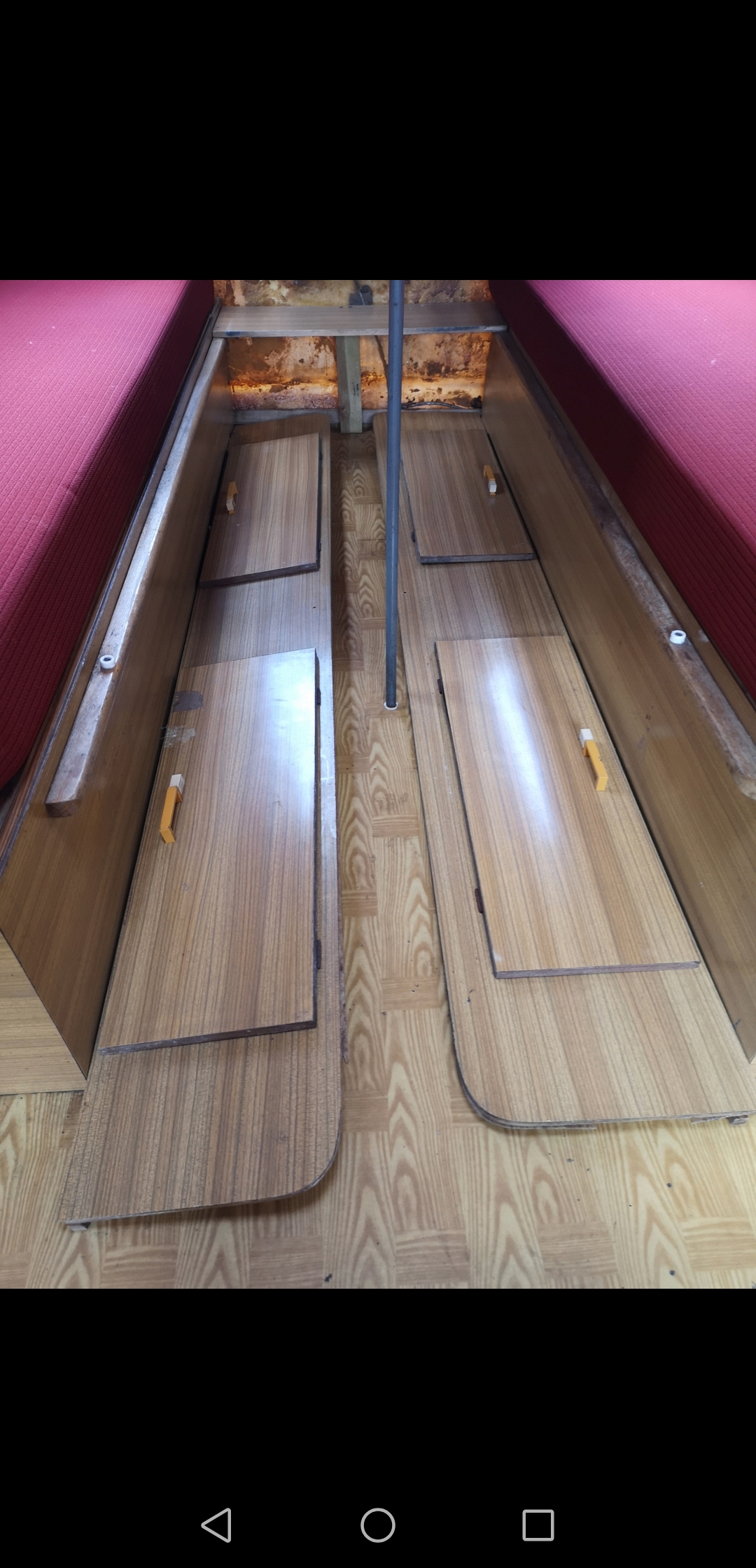 Jaki kolor tapicerki wybrać? Oryginalny bordo czy lepiej miodowy żeby rozjaśnić wnętrze przyczepy?