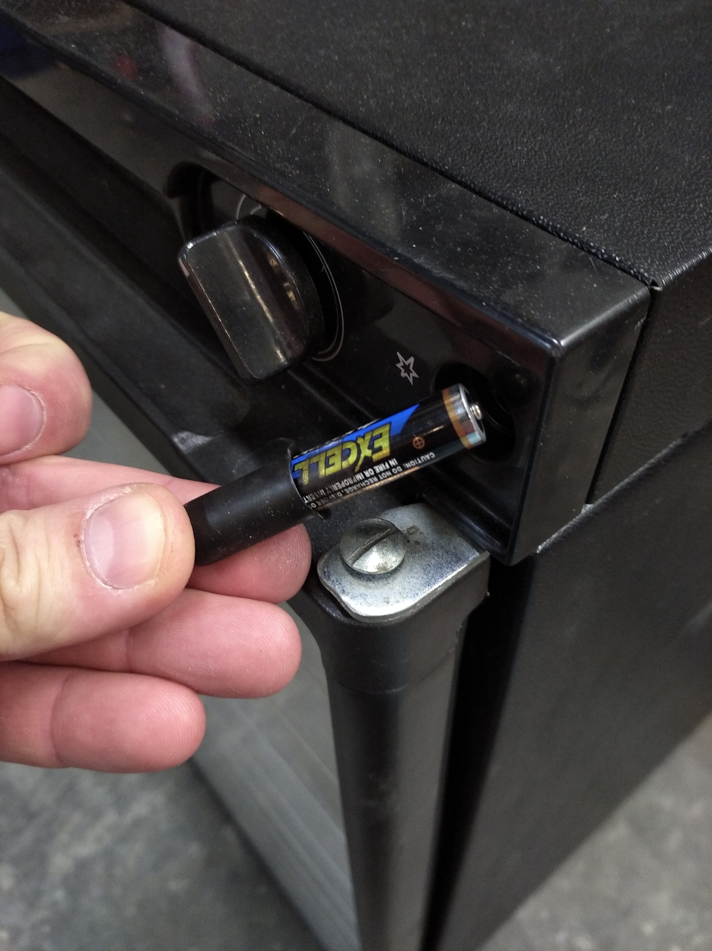 Wystarczy lekko wcisnąć i przekręcić guziczek i tam jest bateria AAA. A ja mam inne pytanie jakie macie reduktory do tej lodówki, bo moja jest na 30mbar i zastanawiam się czy nie będzie kopcić na 37mbar.