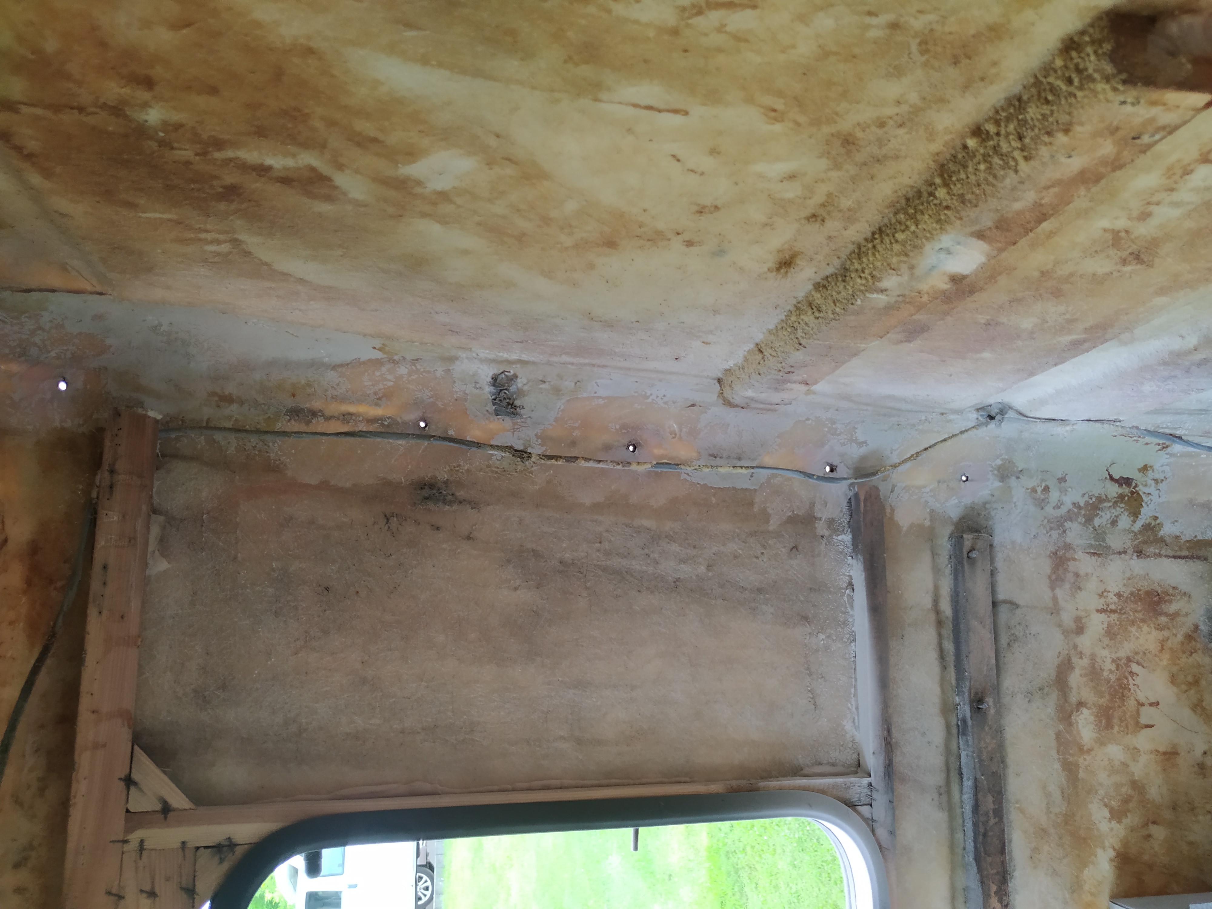 Zrobione od podłogi z tyłu do wysokości wywietrzników po obu stronach. Teściu docina tkaninę a ja laminuję. Teraz czekam na telefon czy wszystko związało jak trzeba. A po południu dalsze prace jak dobrze pójdzie.