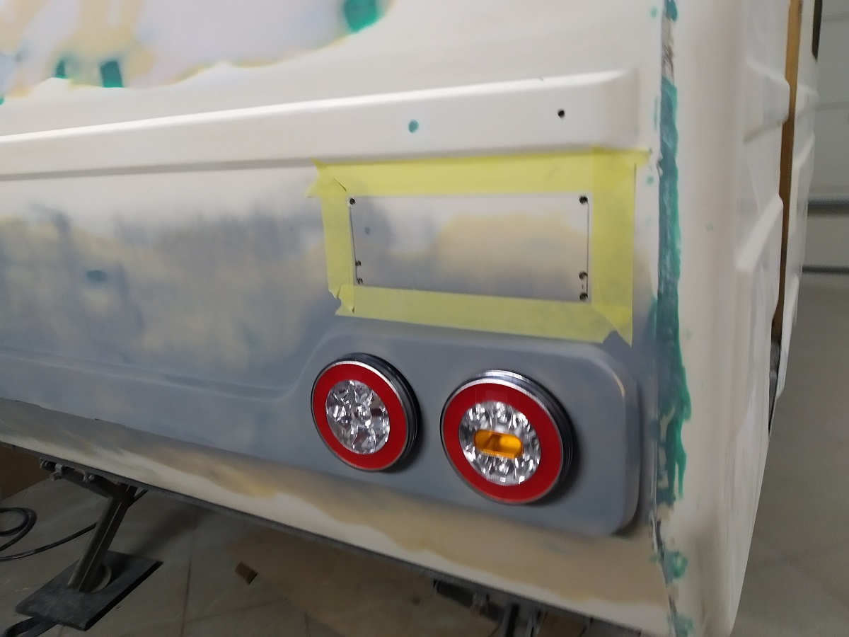 Na ostatnim zdjęciu sklejka pokryta jest grubą warstwą żelkotu. Uznałem, że spróbuję ją przepolerować i nie dokładać do budy całości (to jakieś 2-3 kg dodatkowo), a jedynie na niej wylaminować dokładkę pod światła. Mam nadzieję, że tym razem pójdzie lepiej.