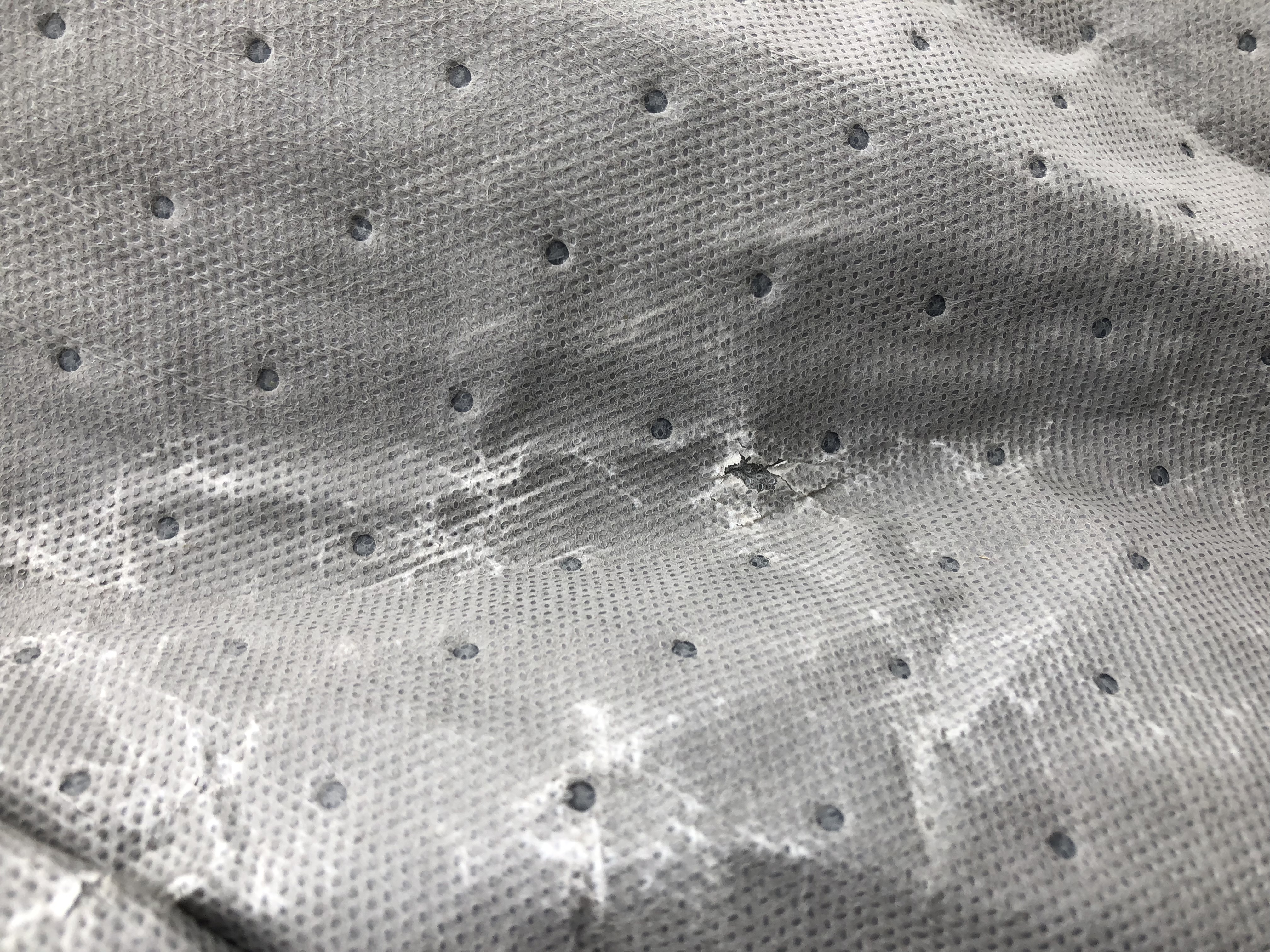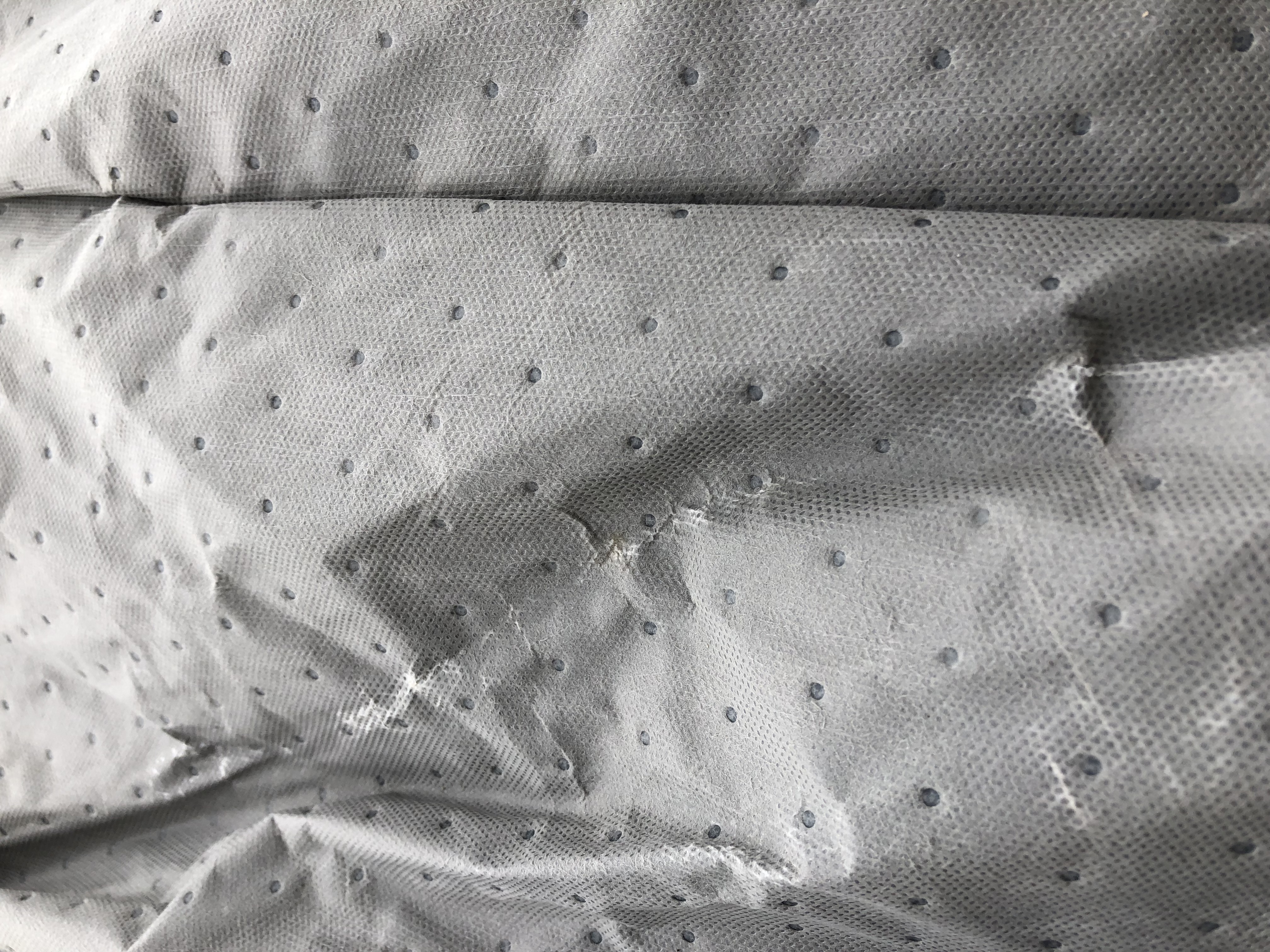 Wg mnie uszkodzenia nie powstały w czasie użytkowania a niechlujnego przechowywania zwiniętego w "kłębek" w sezonie letnim.
